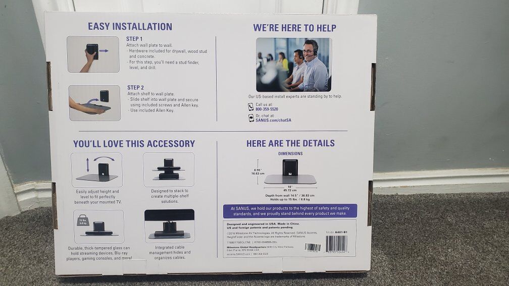 Venmoon wall component shelf that holds up to 15 lbs. Perfect to put under mounted TV to hold gaming console; all hardware included. Bracket organizes and hides cables.