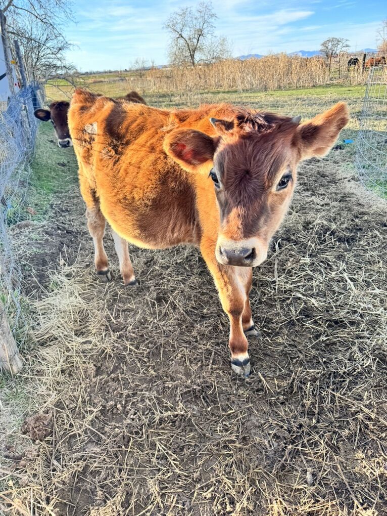 One available. He’s been on pasture, along with hay, grain, and minerals. Grain started for best tasting meat. He’s good size, growing fast. Asking $1,500. Cash only.