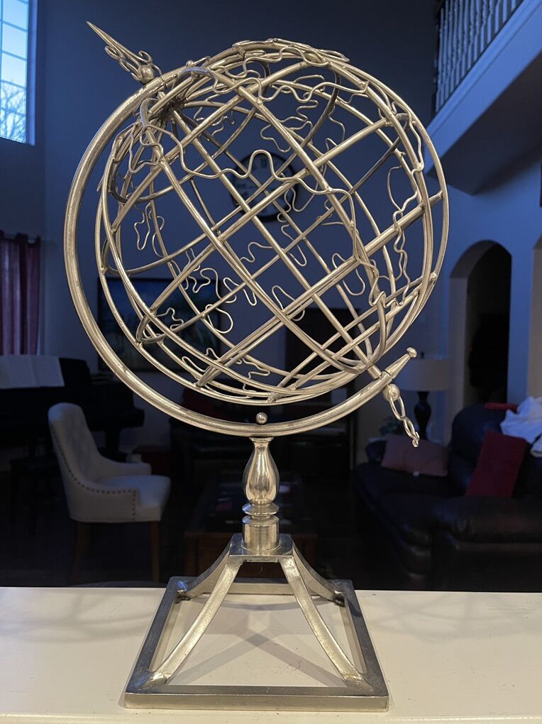 PayPalThis is a fun metal globe. It’s very solid and interesting! It’s approximately two feet tall.