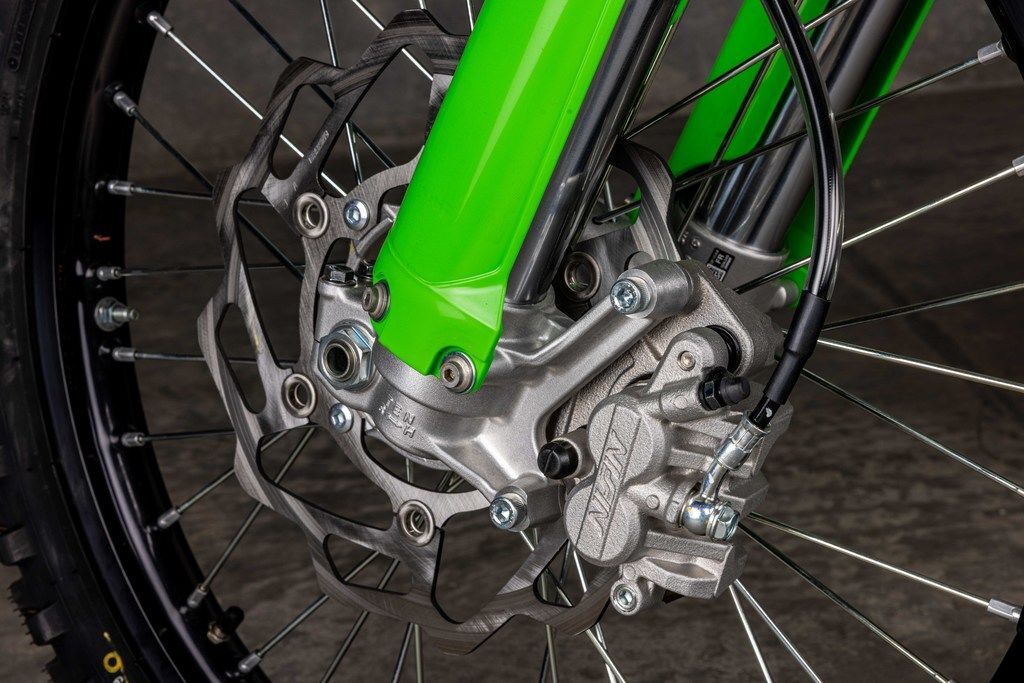 Features like a lightweight perimeter frame, Showa 49mm coil-spring fork, and Uni-Trak® rear suspension sharpen handling performance and stability on every section of the track. Start shaving down lap times when you experience it all come together.