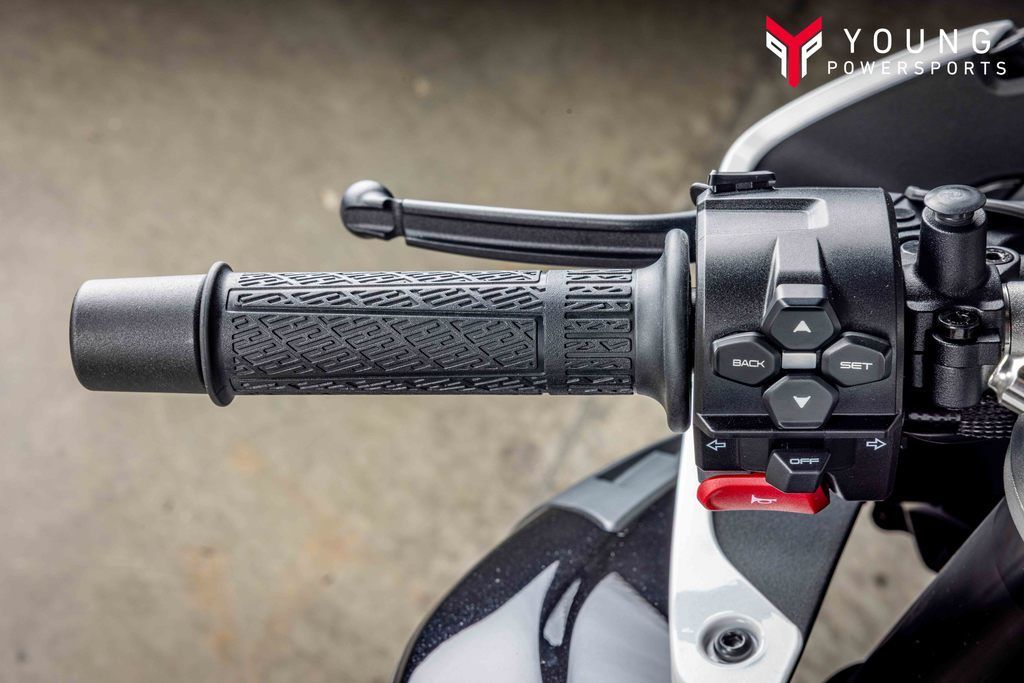Behold 429 pounds of aluminum, electronics, and attitude—driven by a 675cc inline-triple unleashing 95 horsepower at 11,000 rpm, with torque that shows up early and builds smoothly. The adjustable KYB suspension reads ribbon after ribbon of curvy asphalt. Winglets and a steering damper keep the bike arrow-steady while the belly-mounted exhaust belts out its signature growl. A full-color 5-inch TFT dash streams the vitals—Bluetooth®, RideSync®, TPMS. Bosch® traction control and dual-channel ABS rev your confidence. Another lean is all it takes to understand: this bike doesn’t just meet your expectations—it resets them. And the price? Welcome to the affordable zone.