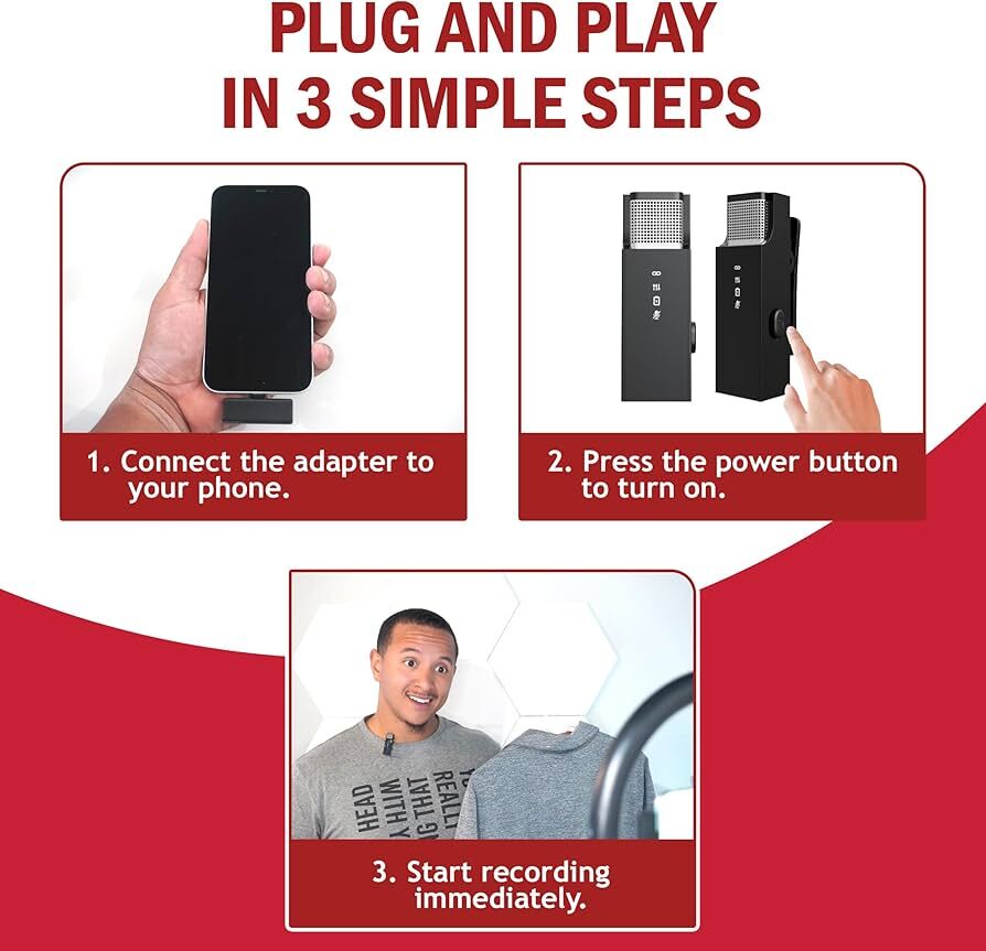 Wireless Lavalier Microphone for iPhone and All Devices - 2 Pack 2.4Ghz Mic, Audio w/Noise Canceling - Long Range Up to 175ft - Easy to Use for Video Recording, Podcast
