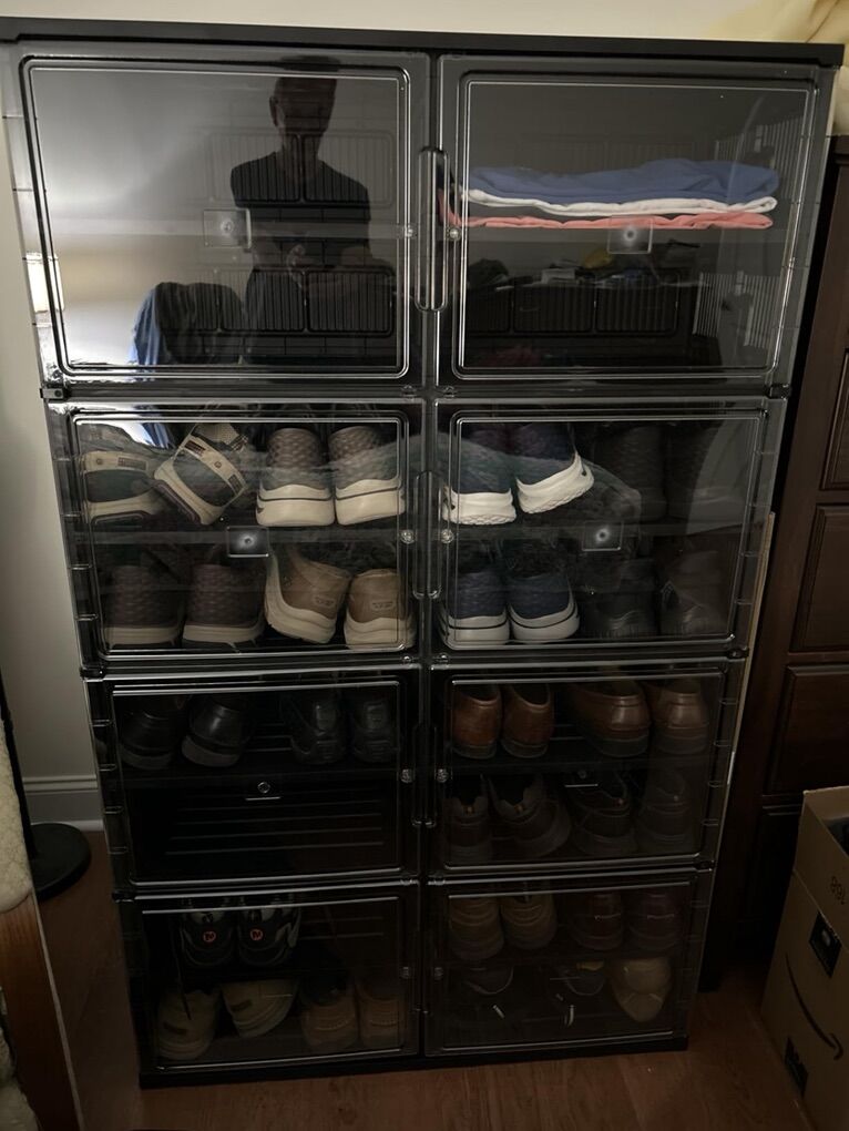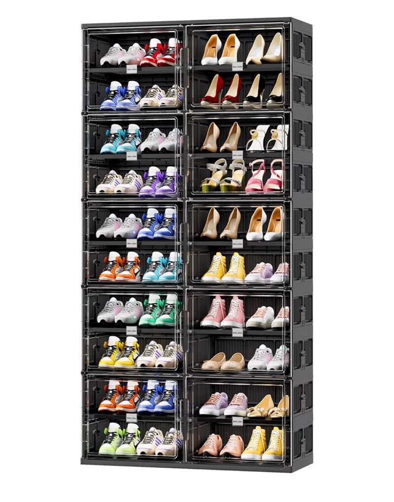 This folding shoe box offers organized storage for multiple pairs. Its six-tier design helps maximize space while keeping shoes easily accessible. A convenient solution for closets or entryways.