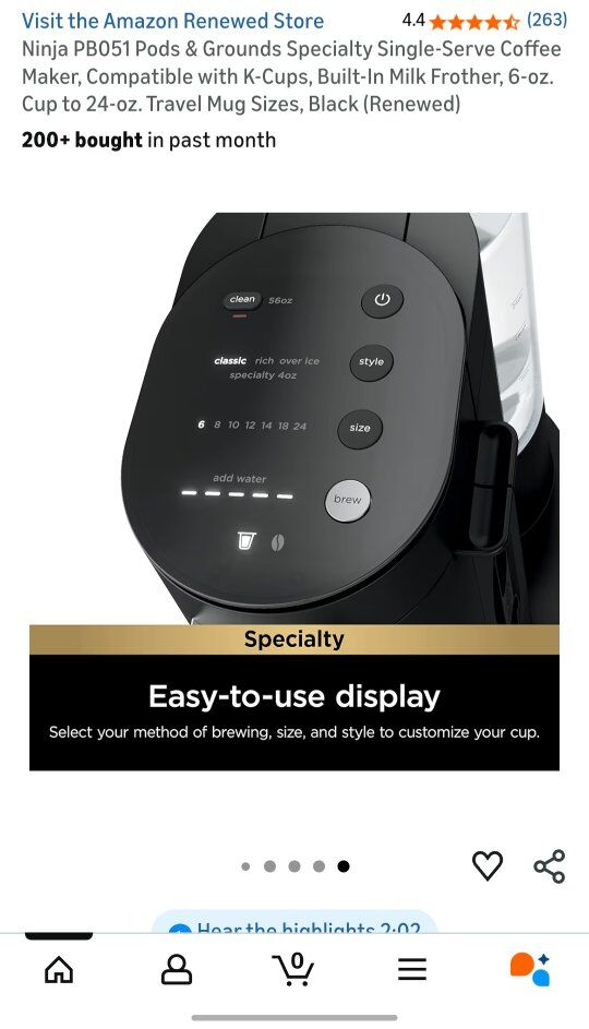 Users can select from Classic, Rich, Over Ice, or Specialty brew styles. Some models feature a built-in, fold-away frother for making specialty drinks like lattes and cappuccinos. The appliance has a compact design, making it suitable for limited countertop space.