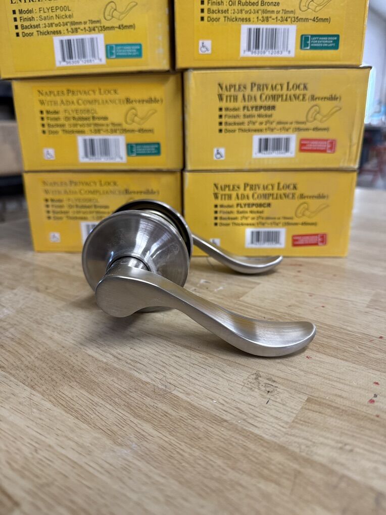 We have about 50 of these beautiful Satin Nickel lever locks for $10 a piece new in box.