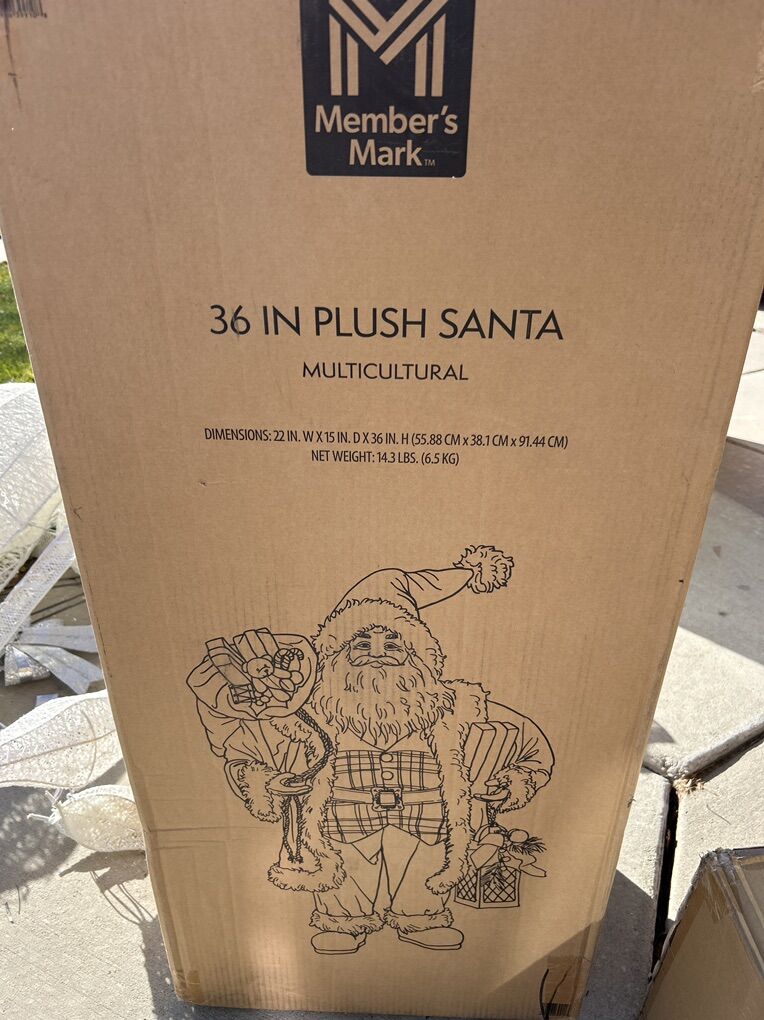 ApplePayMembers Mark 36” multicultural plush Santa. Indoor use. Stands up.