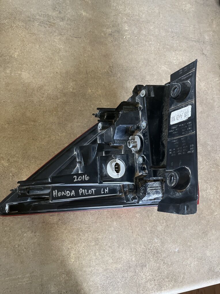 The product is a Beamax-9 Rear Outer Left Side Tail Light Brake Lamp for the 2016-2018 Honda Pilot. It features red light color, clear lens color, and comes with bulbs included. The tail light is DOT/Certified and SAE-Certified.