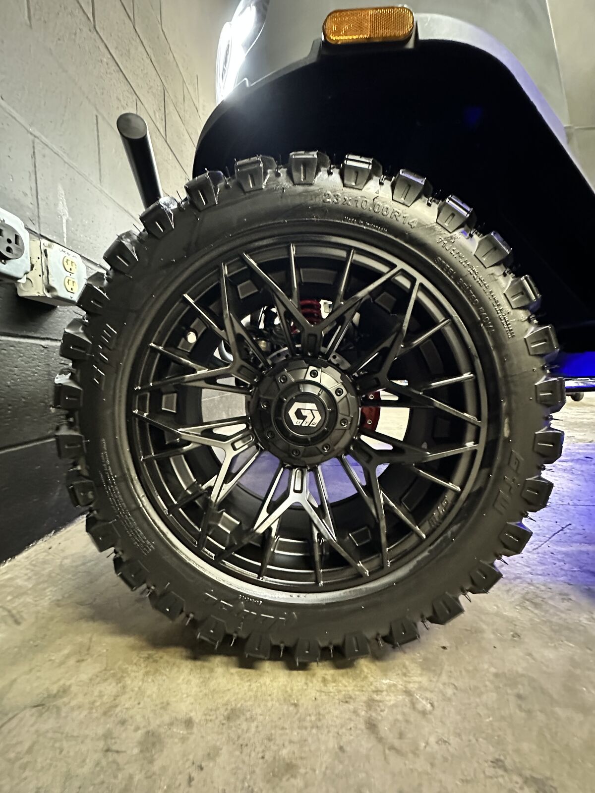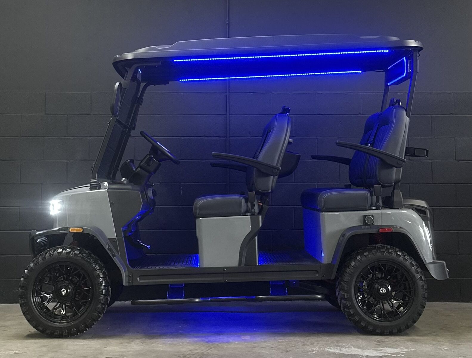 Venmo14″ Wheels/Tires AM/FM Radio Blue Tooth, Android Audio, Car Play Adjustable Steering Wheel 4 Wheel Disc Brakes Lightbar Soundbar with LEDS Street Ready Backup Camera Folding Windshield Fully Loaded Up to 25mph+