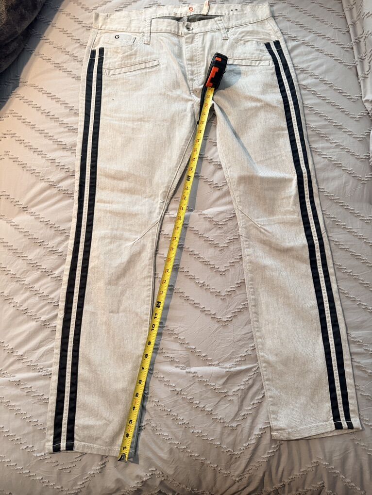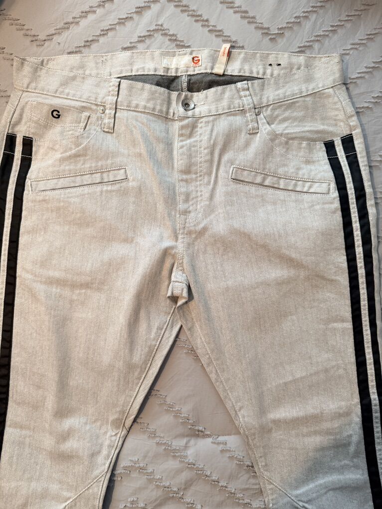 VenmoSize 36 x 32 skinny jeans front by Guess Jeans. 36 inch waist, 32 inch inseam one if the front lower pockets isn’t even unstitched.