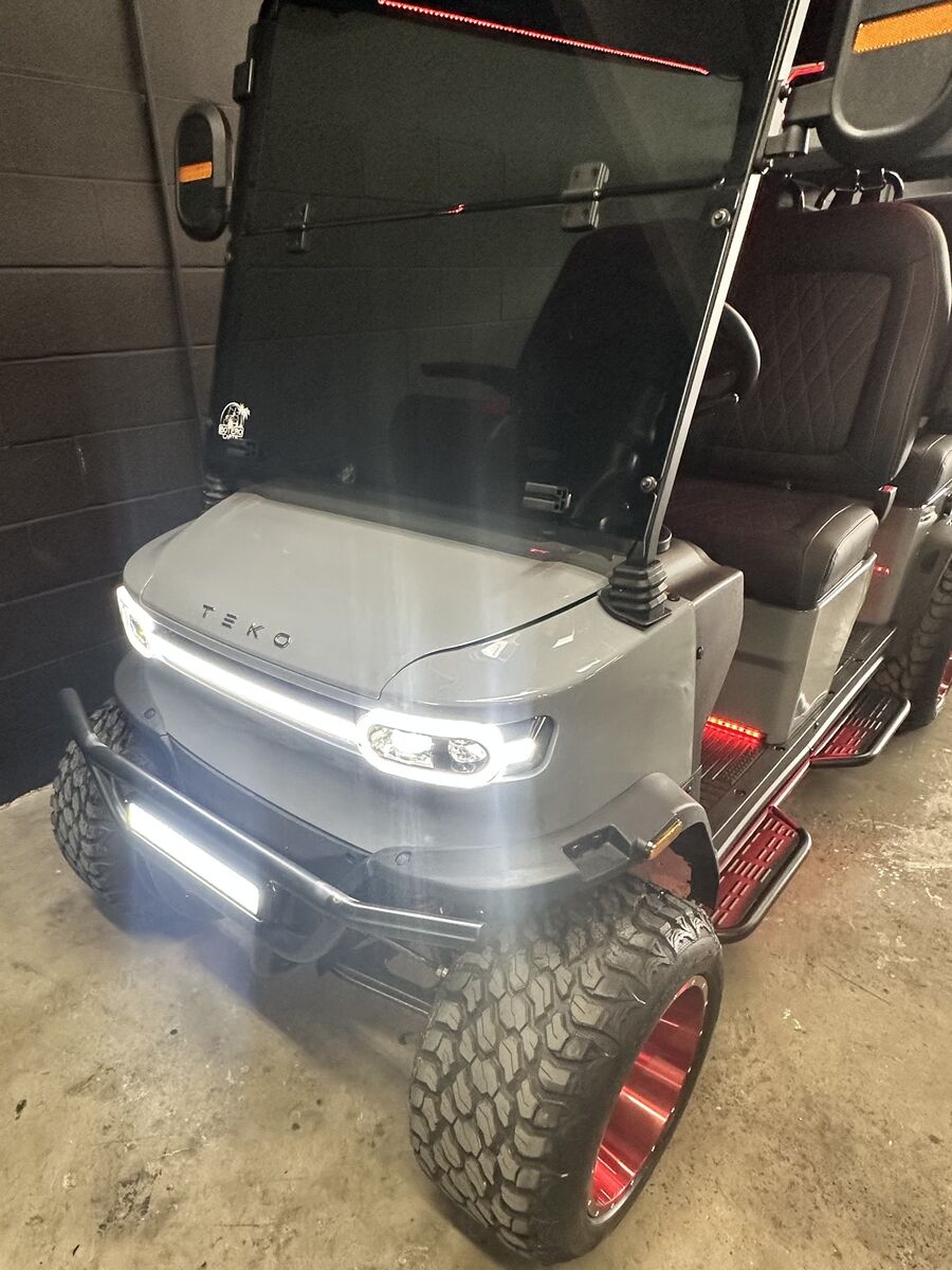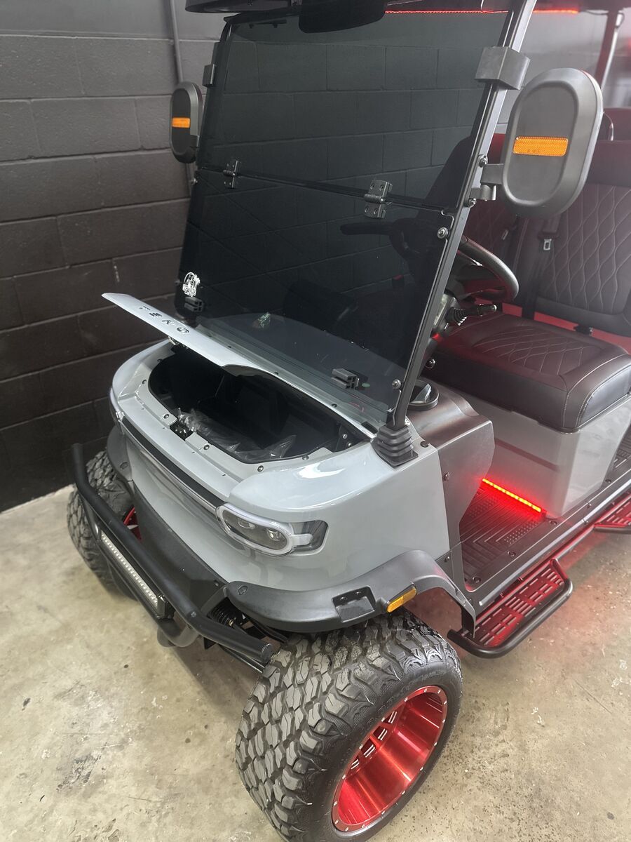 Zelle14″ Wheels/Tires AM/FM Radio Blue Tooth, Android Audio, Car Play Adjustable Steering Wheel 4 Wheel Disc Brakes Lightbar Soundbar with LEDS Street Ready Backup Camera Folding Windshield Fully Loaded Up to 25mph+
