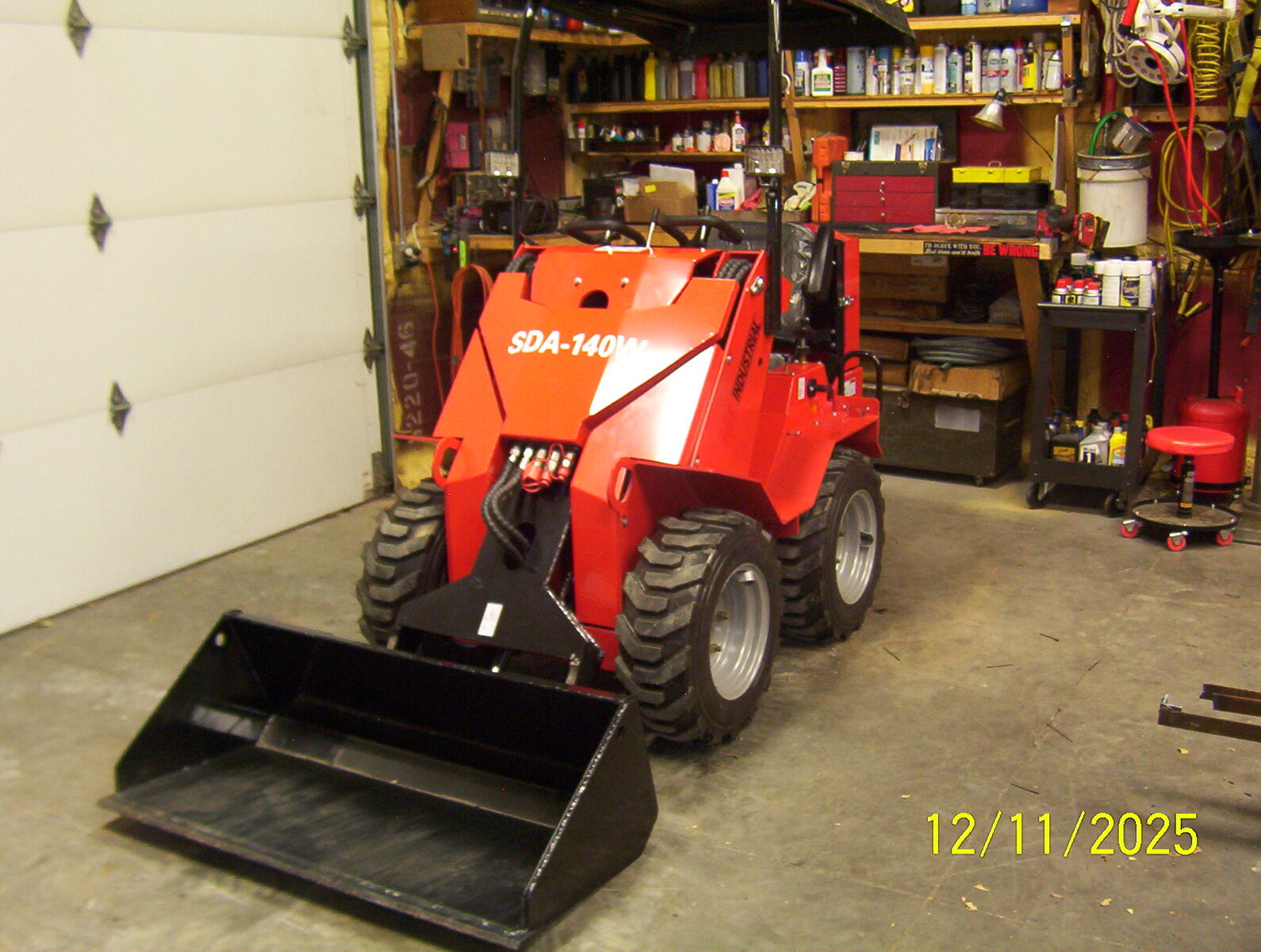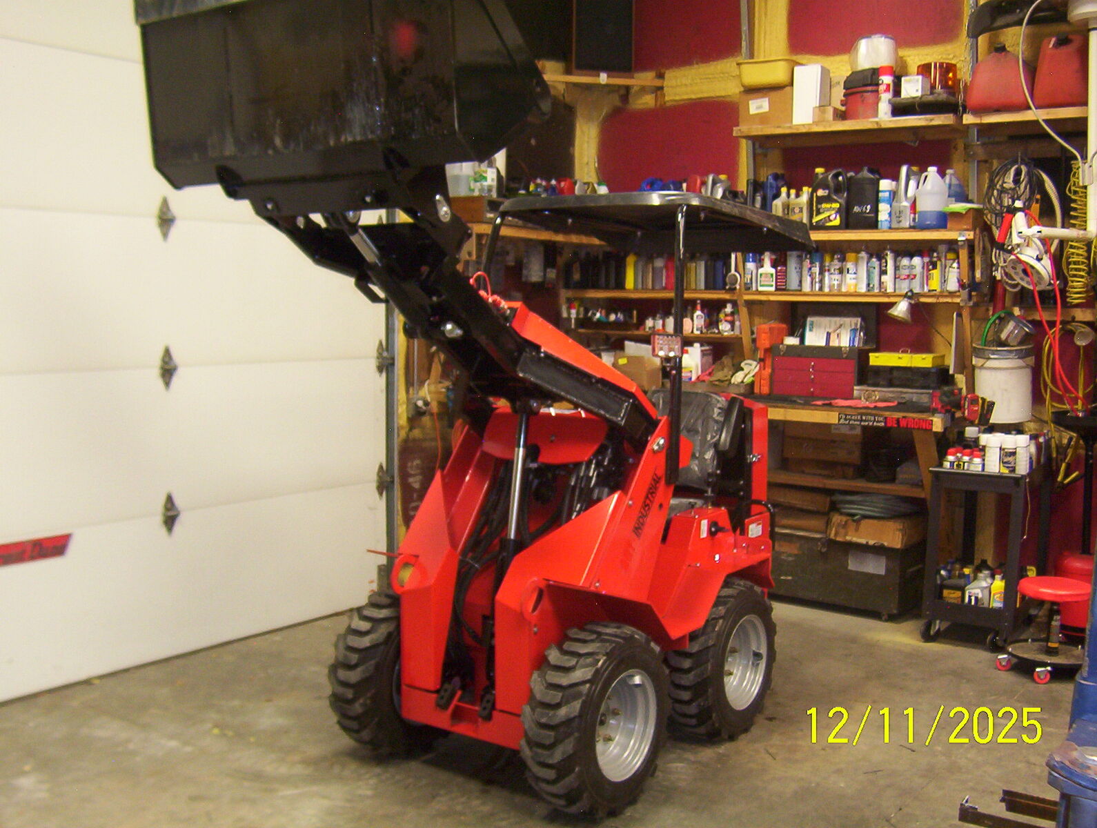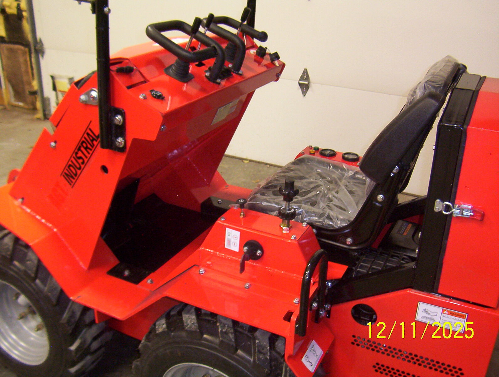 Cute little thing, huh. Steers like a skidster and if not sold will be testing it out in the snow. It could pick up it's weight easily but the rear end will raise up. Weights are needed in the back if picking up very heavy material. It is stout and built with fairly heavy steele. (probably our scrap) I am guessing under 500 pounds before the tail lifts up on you. I can deliver for free if within 30 miles but nothing leaves the yard BEFORE PAYMENT IS MADE. (lots of pranksters out there) or you can pick up. Feel free to test it out, no pressure. It has 0.4 engine hours of key on, transportation, and testing, otherwise it is new. Text are best, if you call leave a message.
