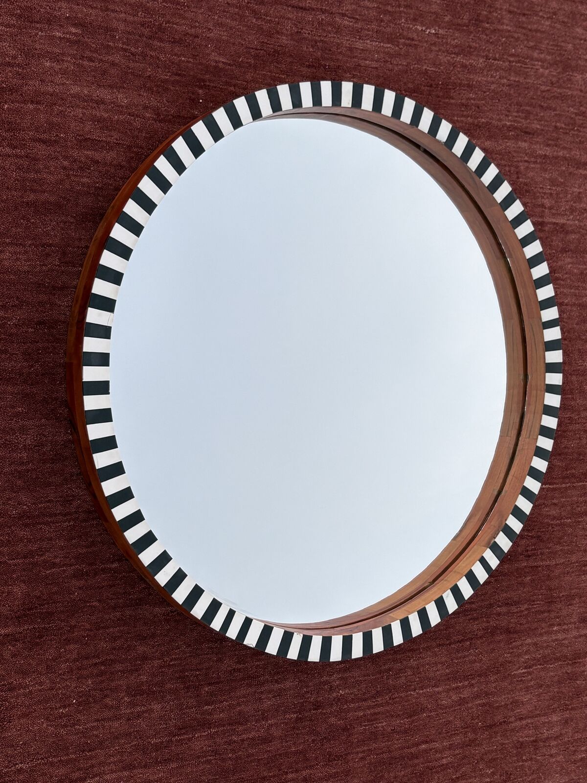 VenmoRK Exports Furniture 30” Black & White Walnut round wall mirror. 2" thick. $100 cash/venmo in Draper