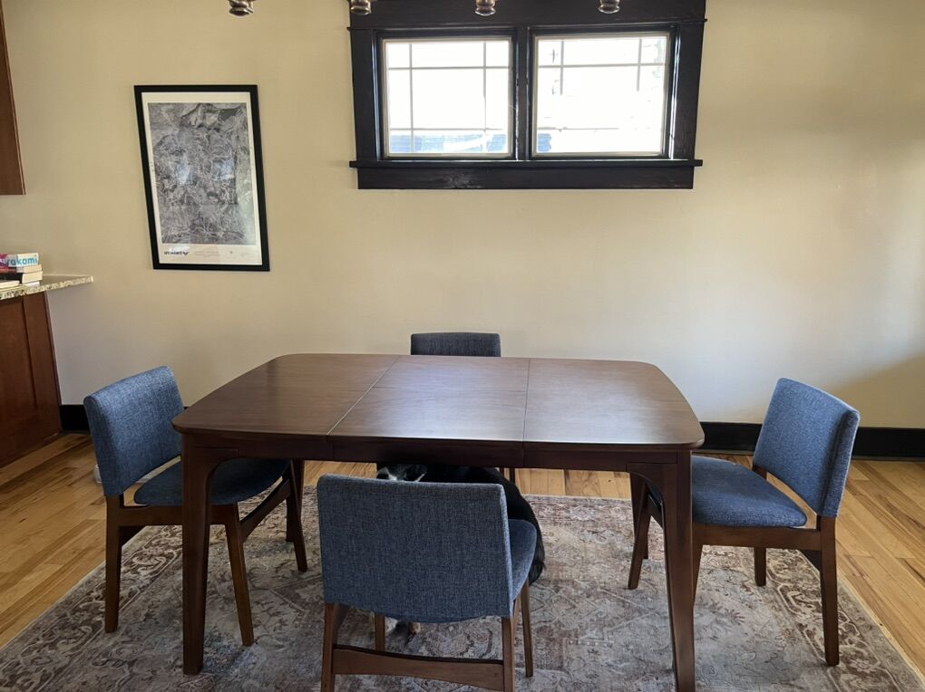 VenmoTable extends to 58” (photo shows it with leaf) and is in very good condition. Chairs also, very minor wear. Love this set but am moving and don’t have room for it. Set is one-year old. ~$1400 retail value.