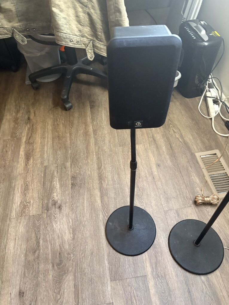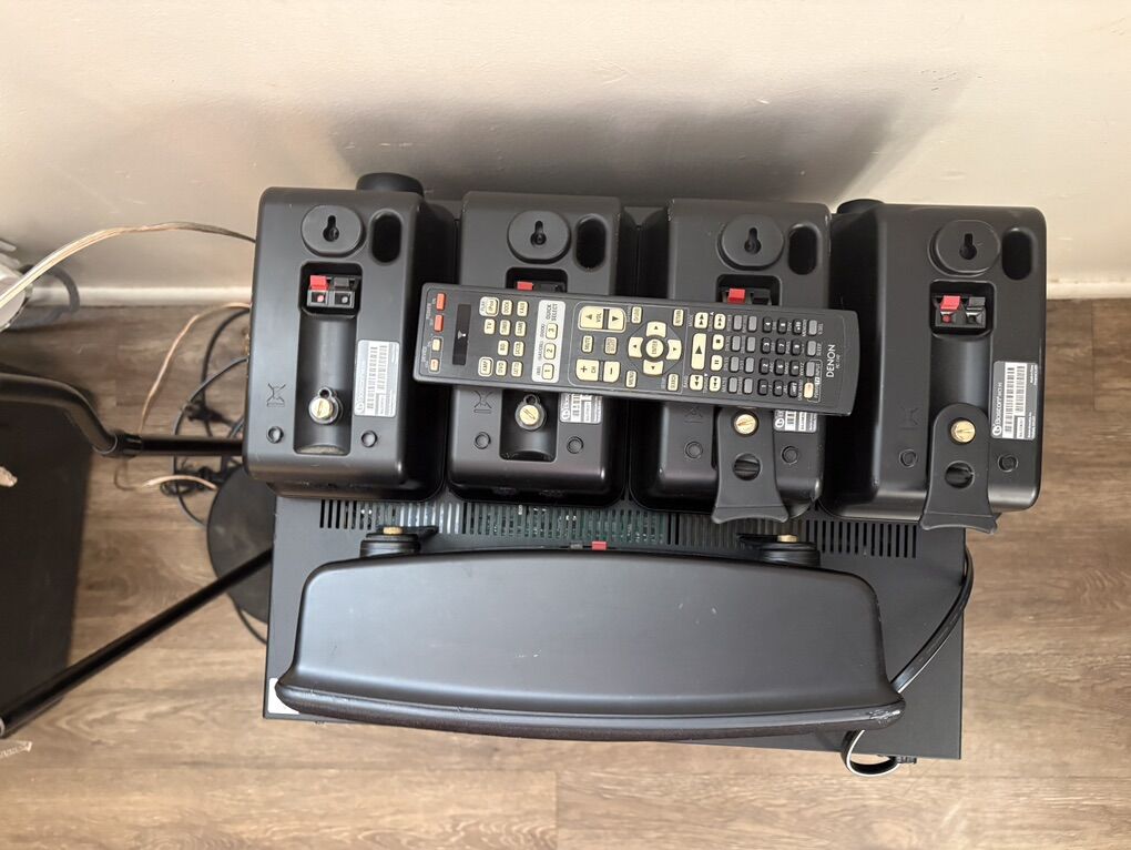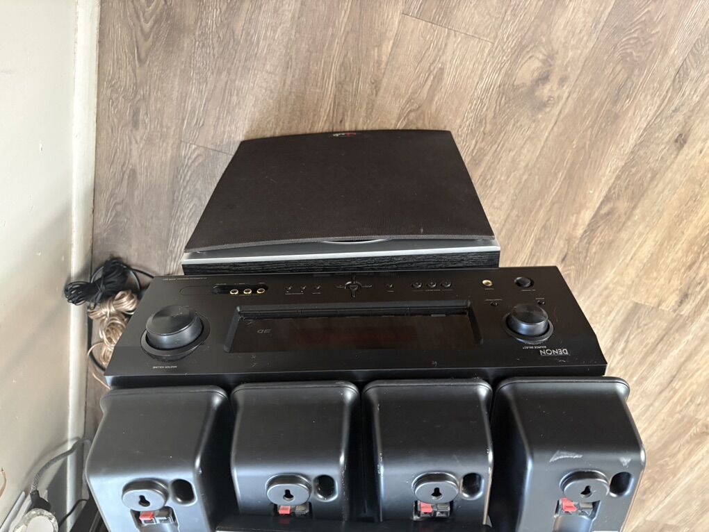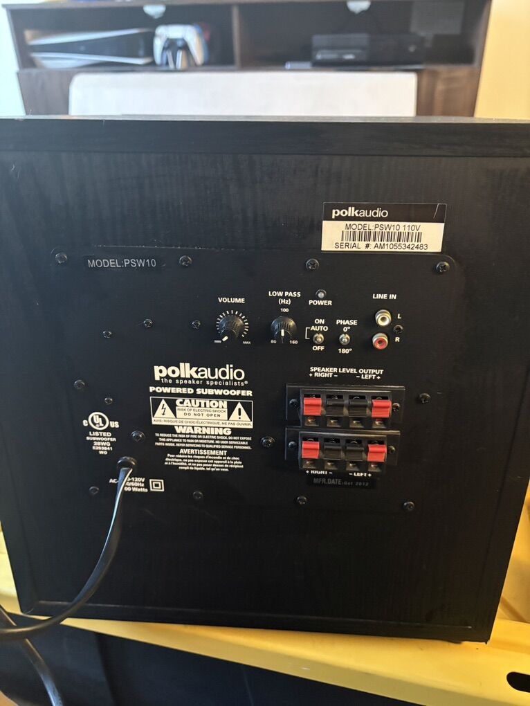 ApplePayThis whole system has worked fantastically. I am not in a home that is allowing for covering up the wires. I ended up buying a subwoofer separate, which is why it’s a Polk audio subwoofer. Nothing is blown in the system at all. It sounds great and easy to set up. I’ve set it up in three separate homes. It also has an AM:FM radio antenna for your listening pleasure. Comes with the original remote. Like I said this system works fantastically and nothing is wrong with it. I just do not want it sitting in storage.  Two speaker stands for the two rear speakers come included. $300.00 obo.