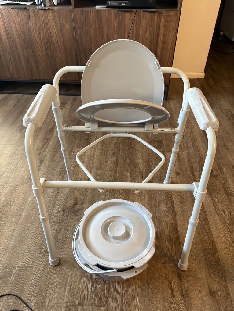 ZelleThis folding commode is lightly used. The manual for your viewing pleasure only fell off because I was cleaning it. (Bleach, lime,etc.) This was used for approximately two months. There is absolutely nothing wrong with it and it is like new. If you want memories worth remembering, this is worth the investment. This Cadillac of commodes allows for copping a squat with ease. The ‘collection’ bucket has only been used to hold candy. Never a dookie. Batteries not included. This is because they are not needed. Of the adds still up, it’s still available. Please, no text unless you are serious.