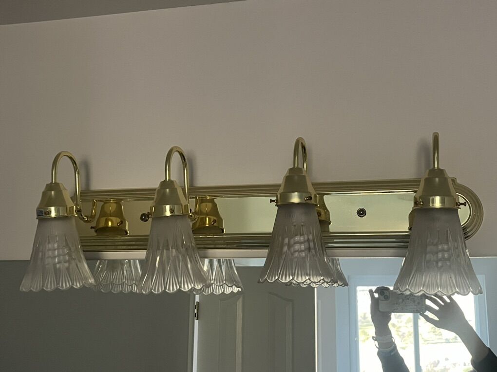 VenmoSelling 2 4-light gold vanity light fixtures. Each is 30” long. Has all the screws and other parts to install them. Text with interest 801-598-3008
