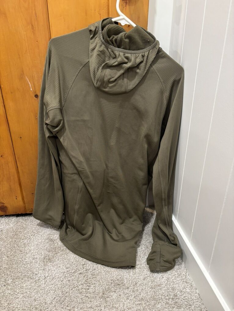 FEATURES & SPECS Weight - 14.5 oz. (L) Body Fabric: 93/7 poly/spandex blend Polygiene® Odor Control Technology Micro-Grid Construction Full-Zip Articulated Hood Strategically Placed Chest Pocket for Easy Access Sleeve cuff thumbholes
