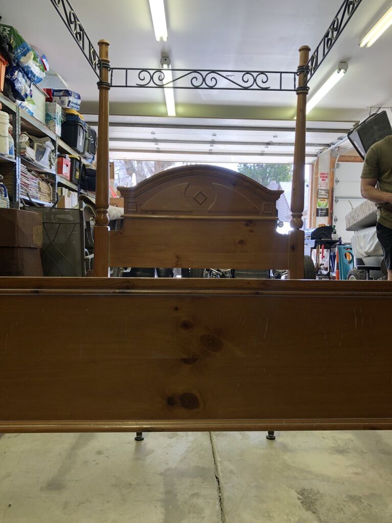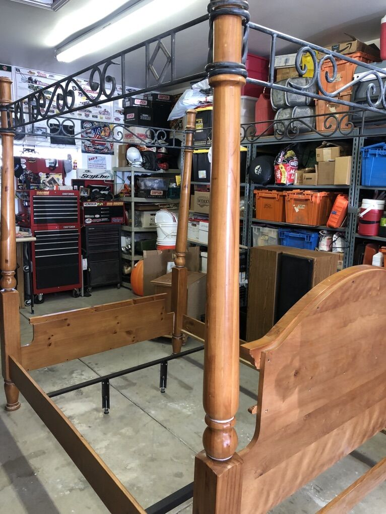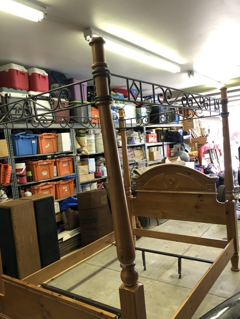 VenmoPoster bed, wood frame iron steel posters One matching night stand. Good condition great quality. $350