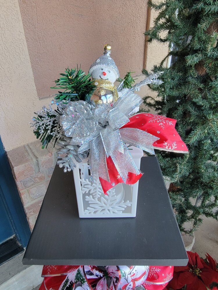 What's included: • Solid wood post construction with exterior black/white painted finish • Cast iron decorative hook (Vintage Style) • Christmas sign or Wreath • Lighted Lantern Topper/Fixture- Batteries Included • Decorative bows and garland (Bows may be different than pictured) • Ready to display right now