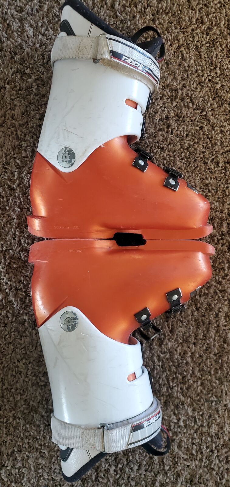 Size 22-22.5 Rossignol Ski boots. My daughter has grown out of these, but they still look good and have plenty of life left.