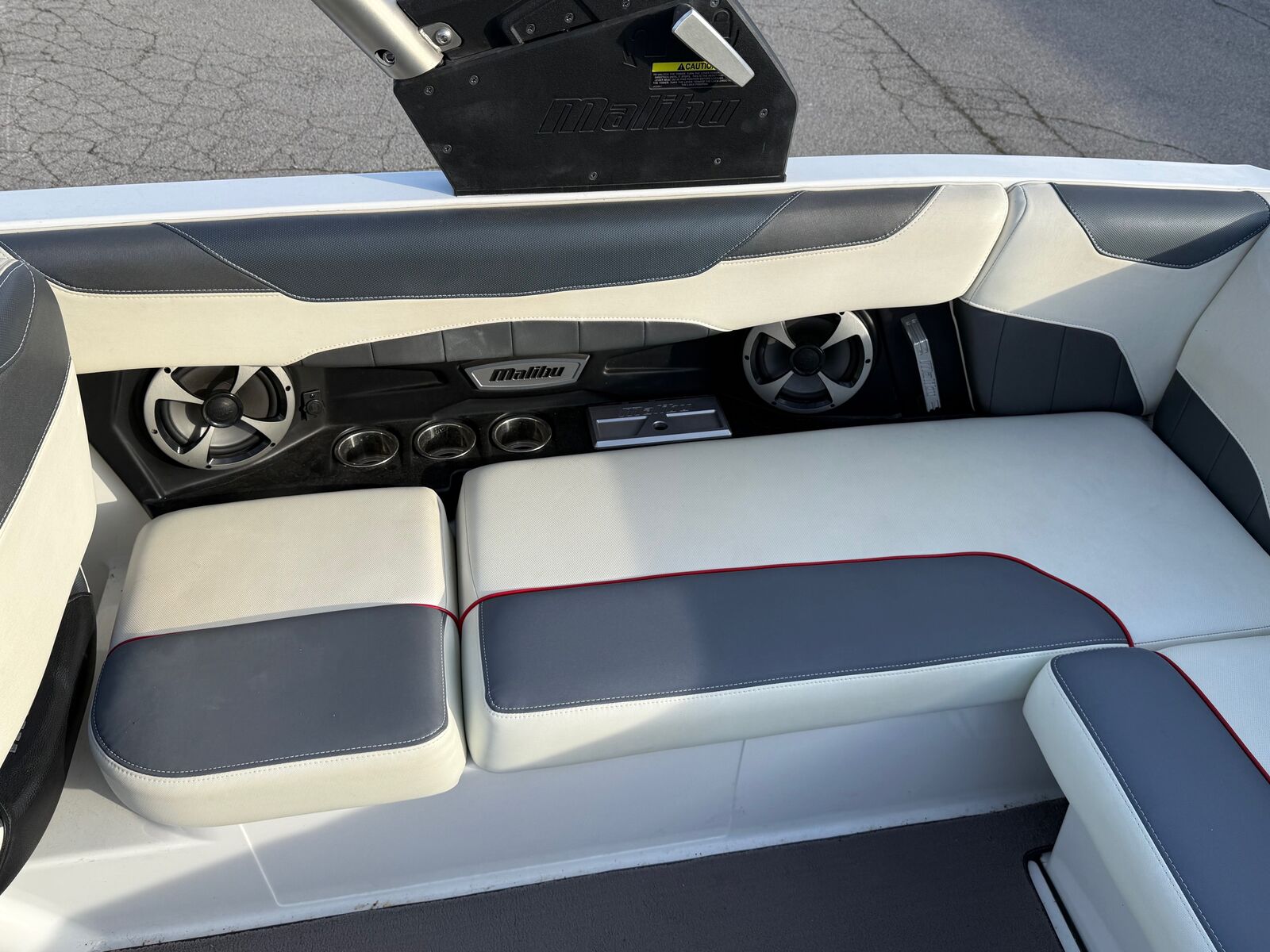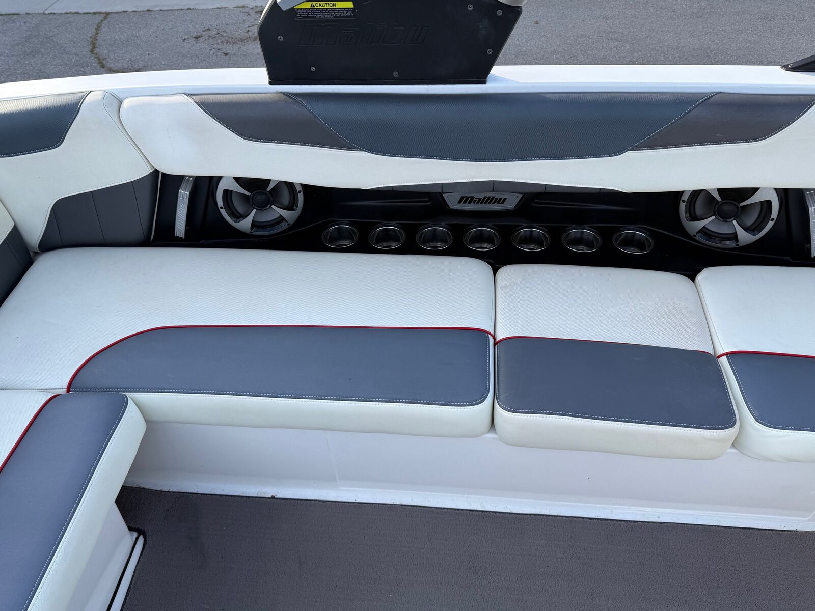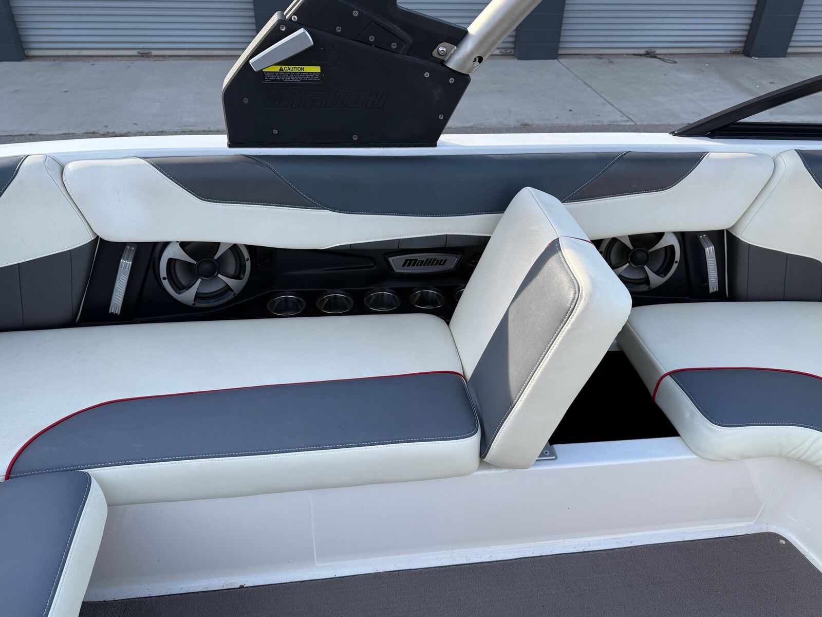 2018 Malibu 23 LSV with 571 hours. Indmar Monsoon 410 6.2L engine with high altitude prop. Diamond hull. G35 tower with upgraded 4-speaker sound system. Two tower mounted swivel racks and bimini top can hold two additional surfboards. Malibu Surf Gate with Power Wedge II and Malibu Surfband. HI FLO ballast system. Dual port heater. Snap out carpet. Zero Off GPS. Malibu Command Center dashboard with the upgraded Sport Dash. Dual axle trailer with fairly new tires and a side-mounted spare. Full coverage boat cover and an additional snap-on bow cover which is very nice for transport if you don’t want to put the full cover on, but you also don’t want everything blowing out of the boat. Always stored indoors. The upholstery is in like-new condition. All service done per manufacturers recommendations including a full major service at the end of this season including oil change, impeller change and driveline service. One owner with title in hand. This boat does it all. Great for surfing, wakeboarding, tubing and even throws a pretty decent waterski wave. The boat runs great with no mechanical issues. The only issues are some minor cosmetic scratches on the back and side of the boat from enthusiastic surfers. We love this boat and are sad to see it go, but our family is getting bigger and we need a bigger boat.