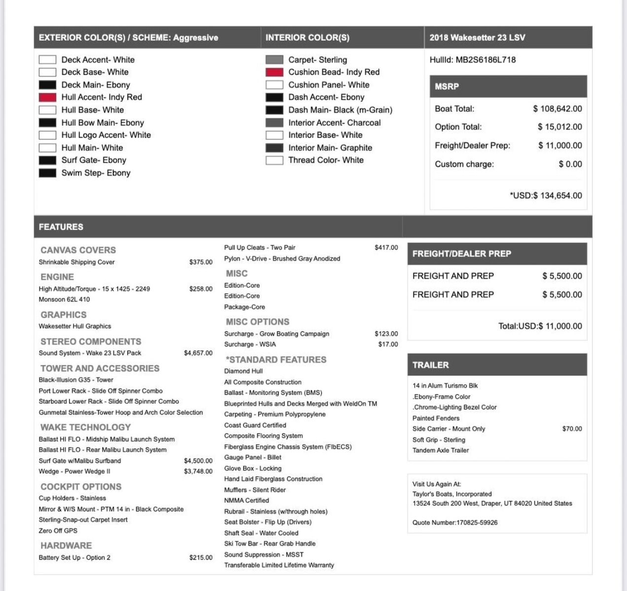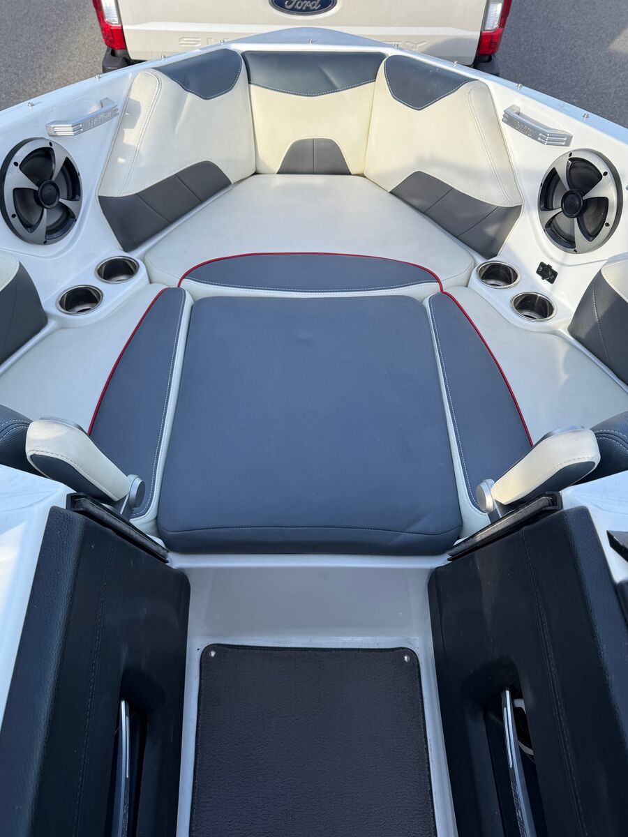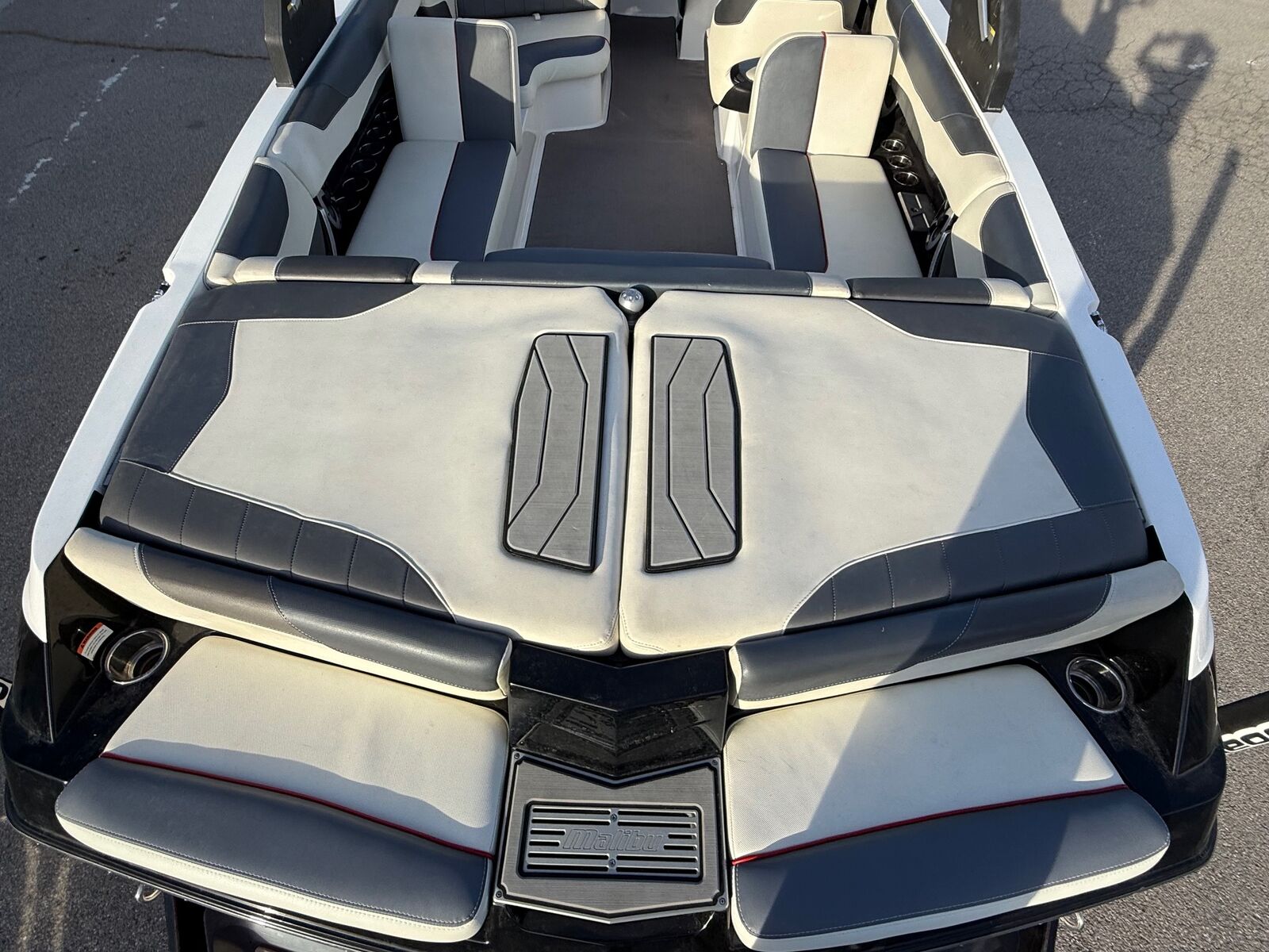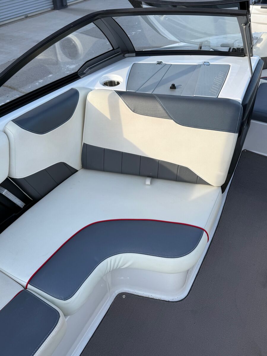 2018 Malibu 23 LSV with 571 hours. Indmar Monsoon 410 6.2L engine with high altitude prop. Diamond hull. G35 tower with upgraded 4-speaker sound system. Two tower mounted swivel racks and bimini top can hold two additional surfboards. Malibu Surf Gate with Power Wedge II and Malibu Surfband. HI FLO ballast system. Dual port heater. Snap out carpet. Zero Off GPS. Malibu Command Center dashboard with the upgraded Sport Dash. Dual axle trailer with fairly new tires and a side-mounted spare. Full coverage boat cover and an additional snap-on bow cover which is very nice for transport if you don’t want to put the full cover on, but you also don’t want everything blowing out of the boat. Always stored indoors. The upholstery is in like-new condition. All service done per manufacturers recommendations including a full major service at the end of this season including oil change, impeller change and driveline service. One owner with title in hand. This boat does it all. Great for surfing, wakeboarding, tubing and even throws a pretty decent waterski wave. The boat runs great with no mechanical issues. The only issues are some minor cosmetic scratches on the back and side of the boat from enthusiastic surfers. We love this boat and are sad to see it go, but our family is getting bigger and we need a bigger boat.