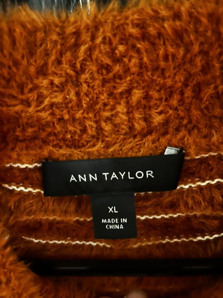 VenmoIn excellent condition an Ann Taylor dot jacquard balloon sleeve sweater in brilliant copper/rust orange color. A cozy fuzzy texture white dotted pattern mock neck an long ballon sleeves with ribbed cuffs and hem. Size XL