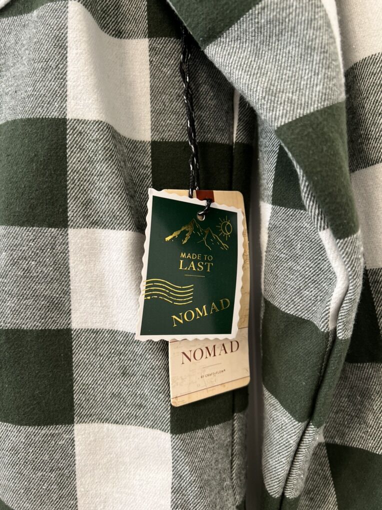 Nomad Men’s Cozy Flannel Green Check Button up Shirt size L brand new never used smoke and pet free home