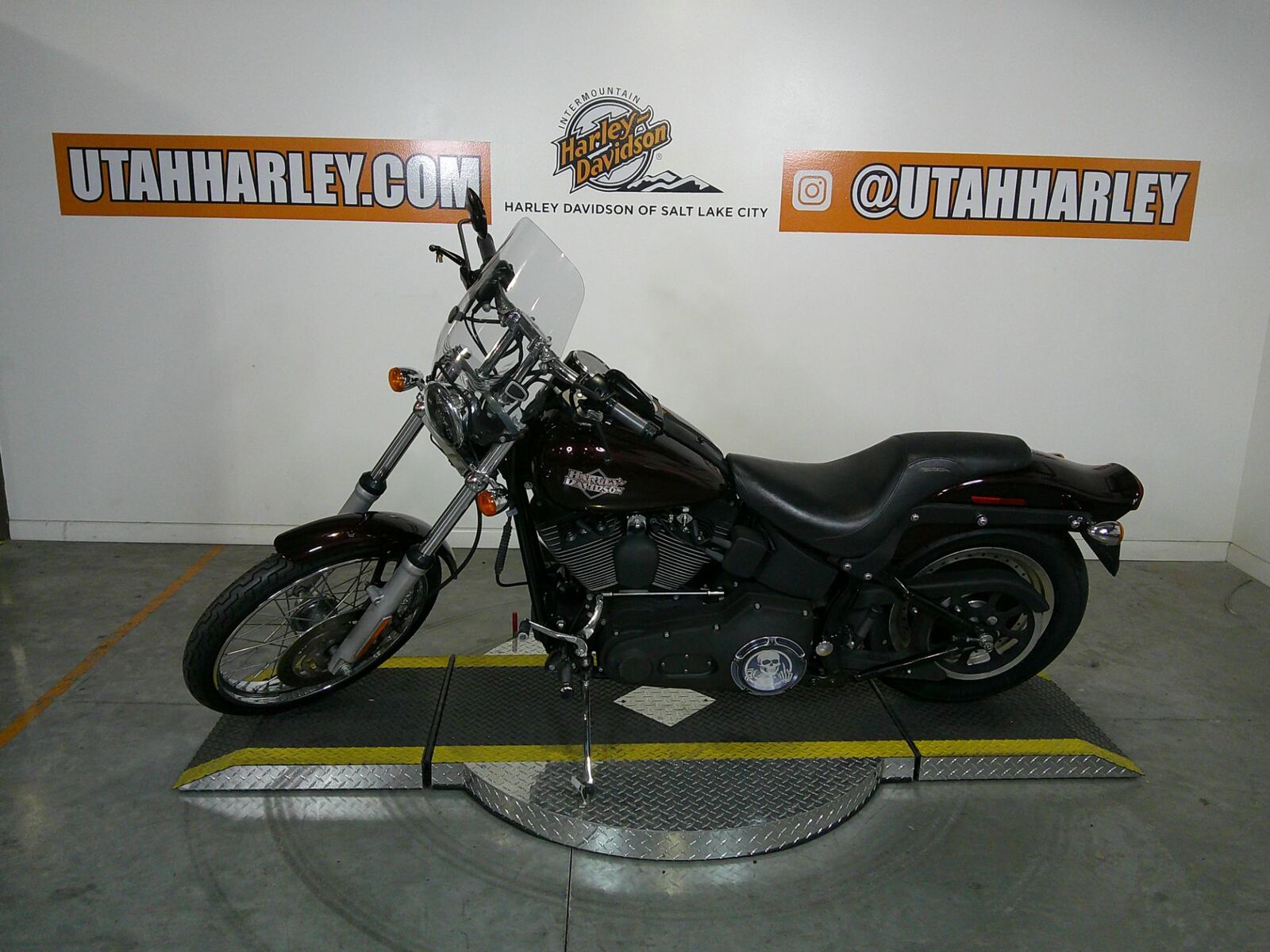 FXSTB/FXSTBI Softail Night Train One glimpse of a Night Train approaching is enough to send shivers up your spine. Must be the wicked blacked-out look. Black tank console. Black rear fender supports. Black air cleaner cover. Black oil tank. Black powder-coated, counterbalanced Twin Cam 88B engine, in carb or EFI, with wrinkle and black covers, of course. But there’s much more to this bike’s lean and mean nature than just darkness. It feels that way, too. Swing a leg over the Badlander seat, stretch a pair of black boots to the forward foot controls and grab hold of the drag-style handlebar. Even the riding position is on the aggressive side. Fire it up and instantly day turns to night. And check out this stunning new optional Profile Laced wheel. Once it meets with the pavement, it’s every awe-struck bystander for themselves.
