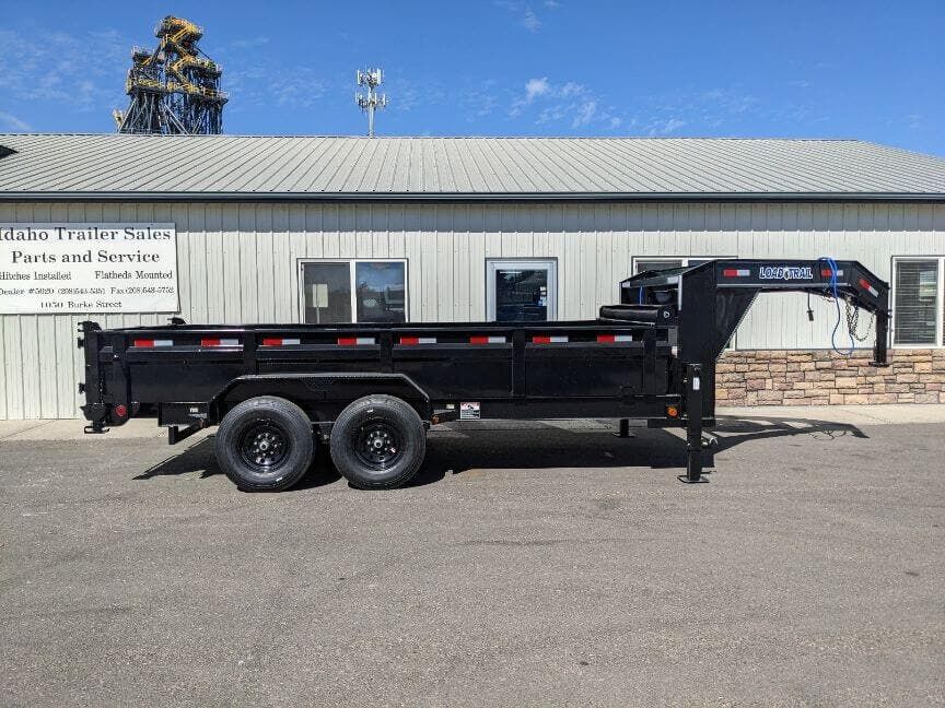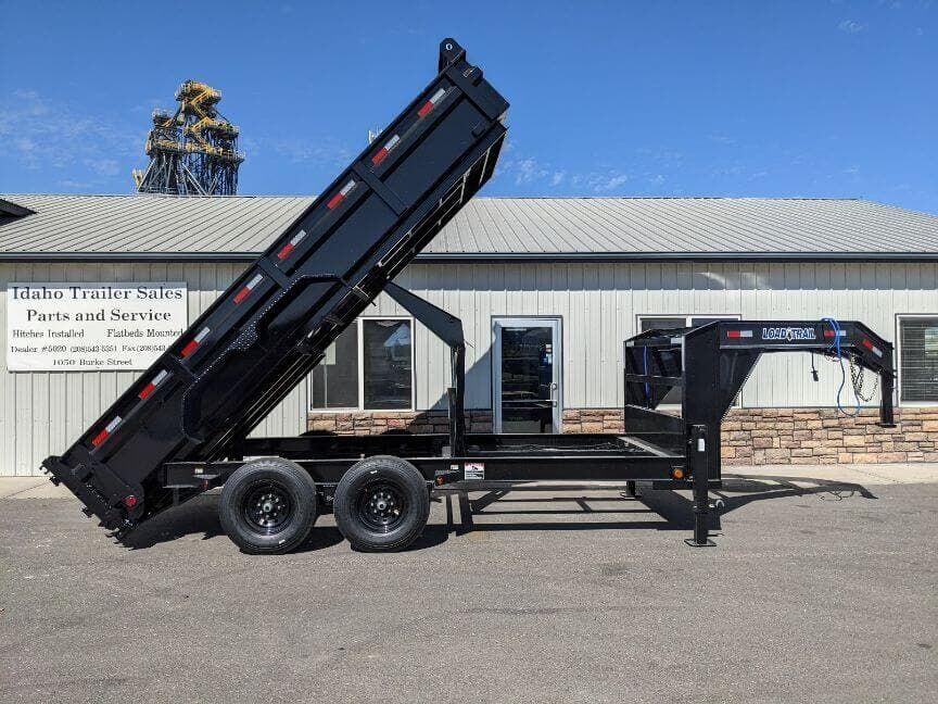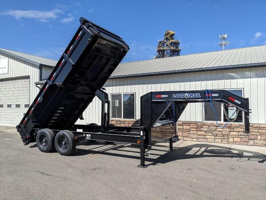 Load Trail 83″ wide x 16′ long 14K Low-Pro gooseneck dump trailer
