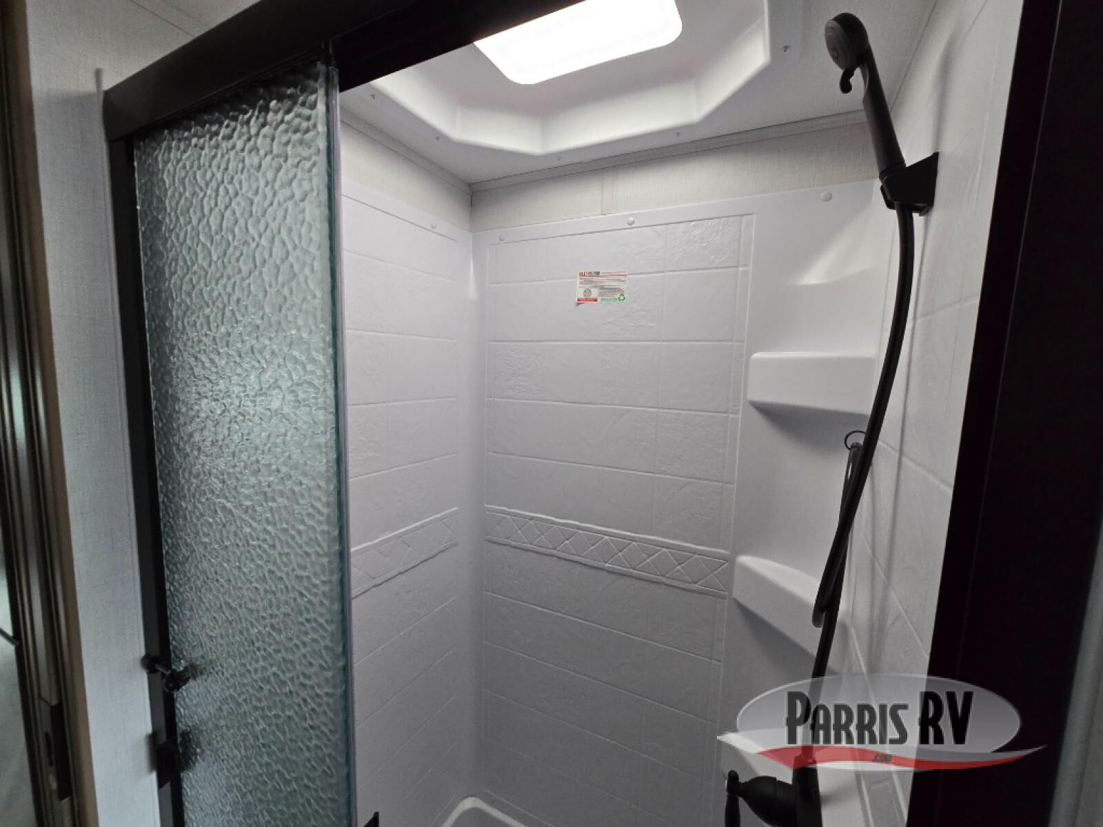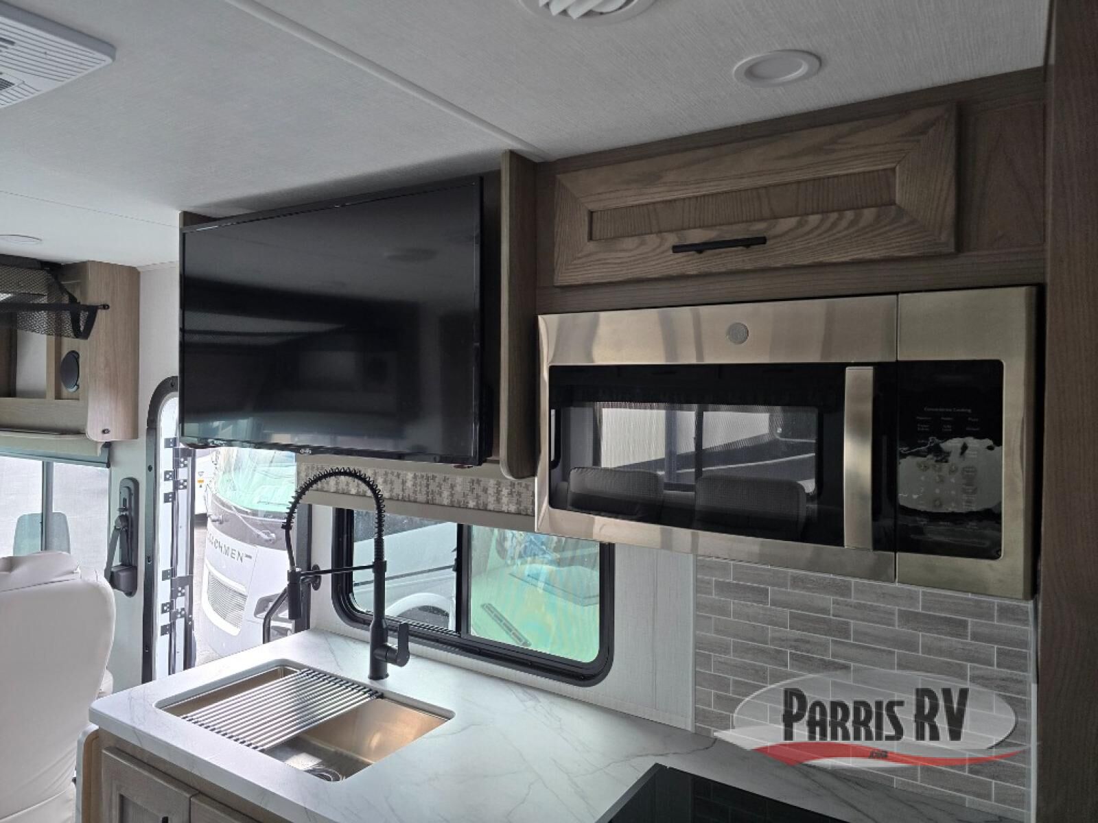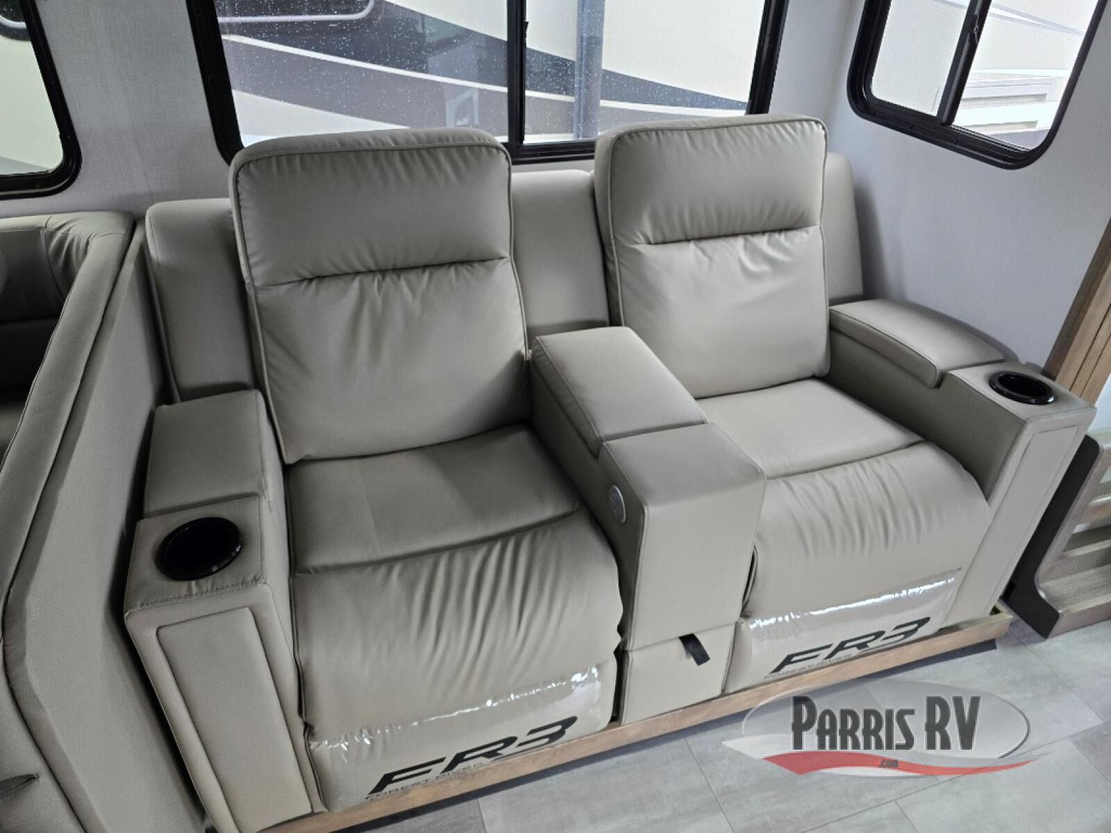 Whether you travel with your spouse, grandkids or friends, this FR3 Class A gas motorhome allows you to travel in style with plenty of additional sleeping choices from the power overhead bunk to the furniture once they are set up at night. You can dine at the wrap-around booth dinette, relax on the hide-a-bed sofa, and make full meals in the kitchen which also includes a residential microwave and countertop extension. The separated bathroom allows someone to take a shower while another freshens up with the private sink and toilet, or maybe you decide to close this area off within the bedroom. Every night you can sleep like a king while watching the 32" LED 12V TV in the bedroom, and maybe you decided to add the washer/dryer option to keep everything clean while on the road.