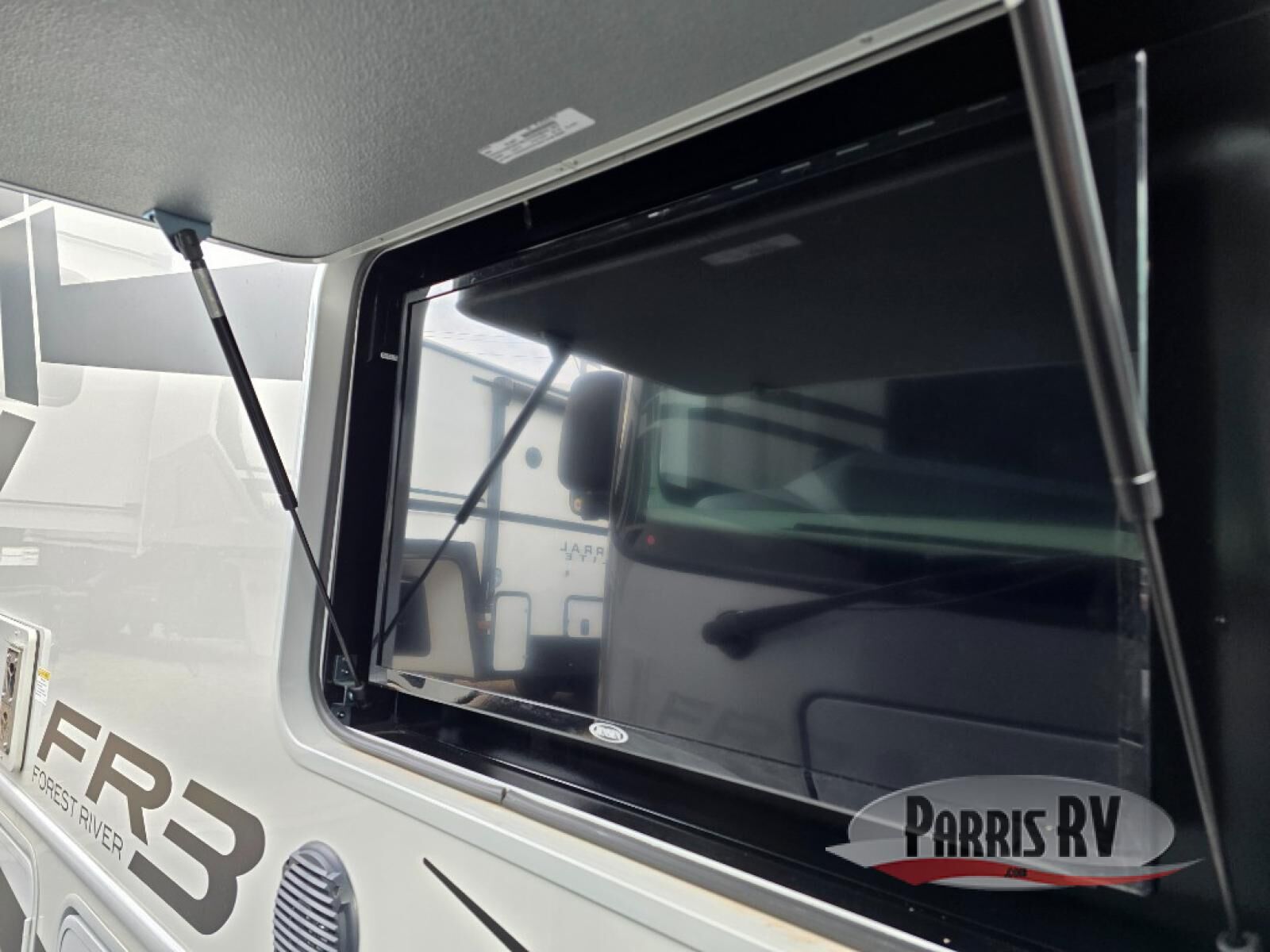 With each FR3 Class A gas motorhome by Forest River, you will find an easy-to-drive coach with a spacious interior allowing you to gather with friends and family with convenience and style found throughout! Each is built with vacuum-bonded construction, a one-piece fiberglass roof with extended rain spouts, a steel firewall and A-pillar extension, Bi-LED headlamps and lower LED fog lights, and grey Rotocast storage boxes with drains. Inside, you will enjoy black hardware, appliances, plumbing fixtures, and a glass shower door frame. You will also find a stainless steel kitchen sink with a bamboo cutting board and roll-up dryer, heavy-duty full-extension ball bearing drawer guides, dual-access dinette storage with doors, and nightstands with charging stations to keep your cellphones ready for whatever is next. Make your selection today!