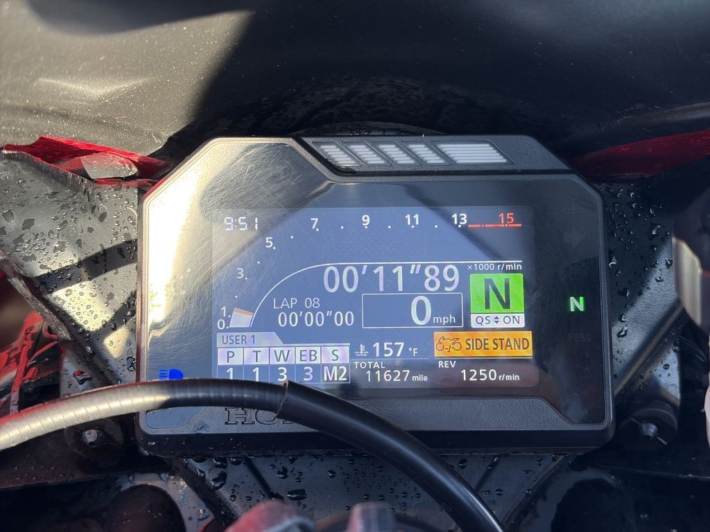 TFT means an instrument display that’s lighter and easier to read than previous LCD designs. It’s a first for Honda, and it’s made its premiere on the CBR1000RR.