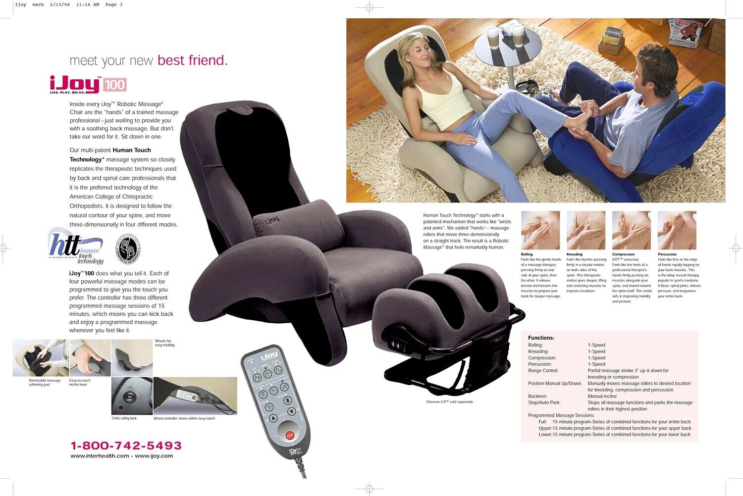 PayPali Joy "Robotic Massage" chair with human touch technology starts with a patented mechanism that works like wrists and arms and an added hand massage rollers that move 3 dimensionally on a straight track. The rolling, kneading and compression massage feels remarkably human. Very little use. Works great and includes calf massage unit. Local pick up only.