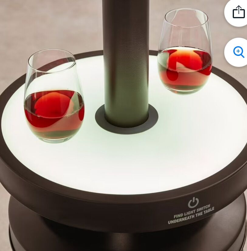 Powerful 50,000 BTU outdoor gas heater Provides heat up to 300 sq. ft. Stainless steel burner with easy-start electronic ignition Anti-tilt switch and Automatic Shut-off device Easy-moving wheels for convenient mobility Features an LED light table Weighted base provides stability Cover included Bronze powder-coated finish 31.5Dia x 86.6H (80cm x 220cm) 53.24 lbs.
