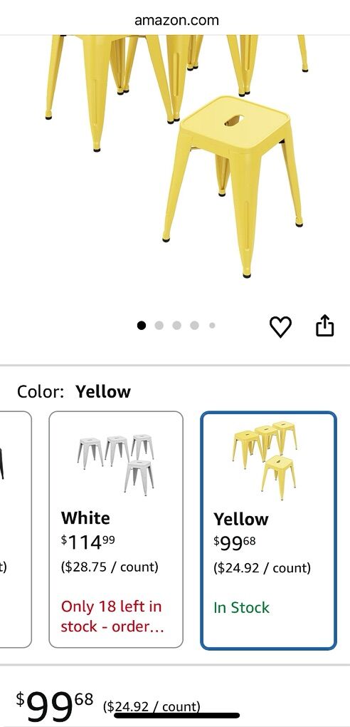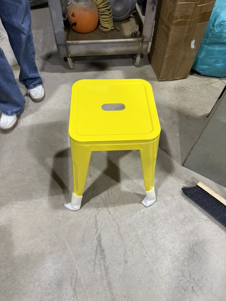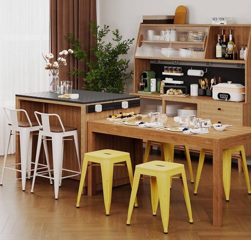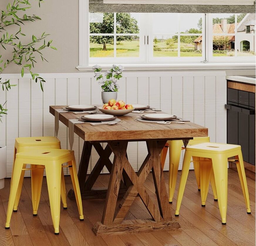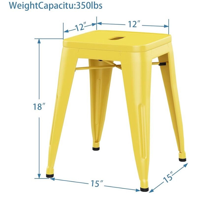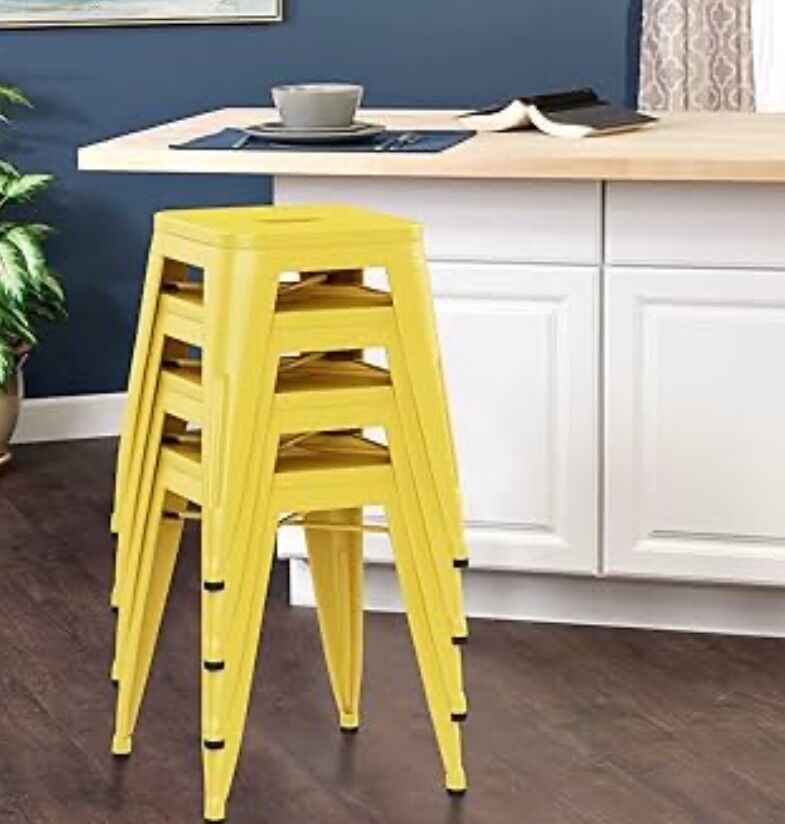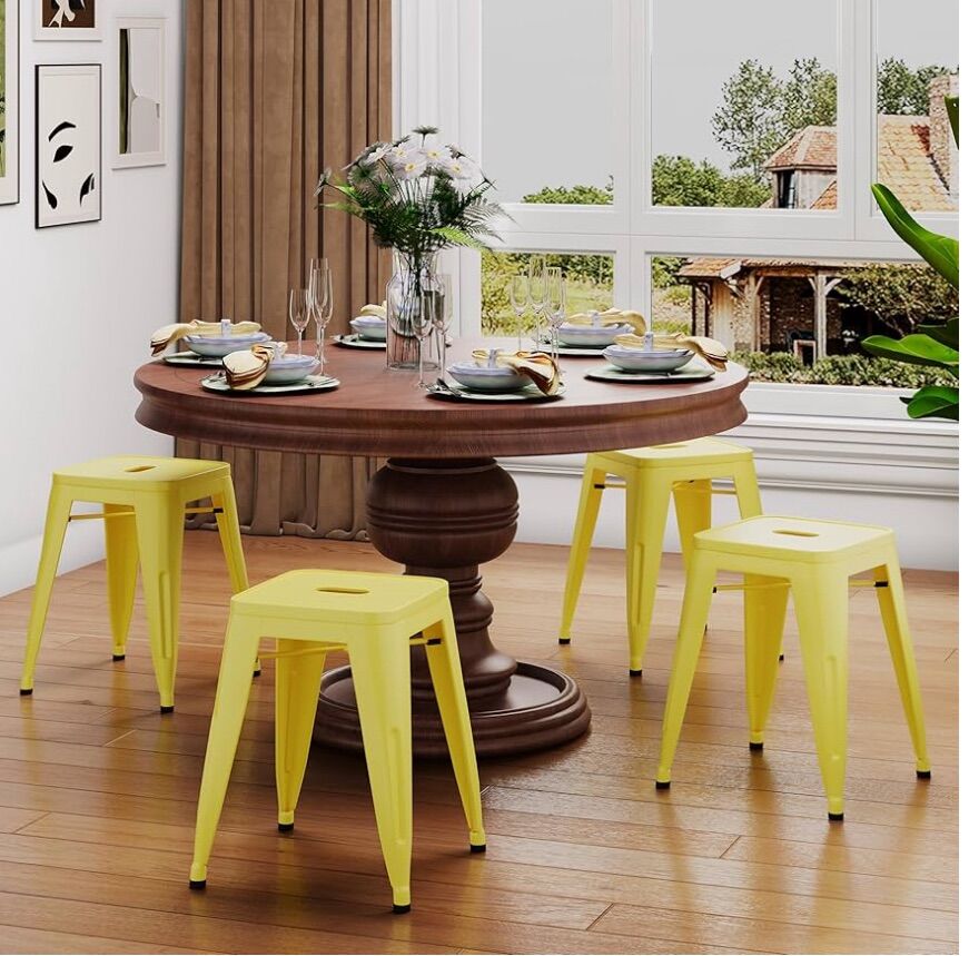 ALISH 18 Inch Stools Backless Industrial Metal Stool Stackable Kids Stools Short Stools School Chairs Metal Dining Chairs Set of 4 yellow stools.