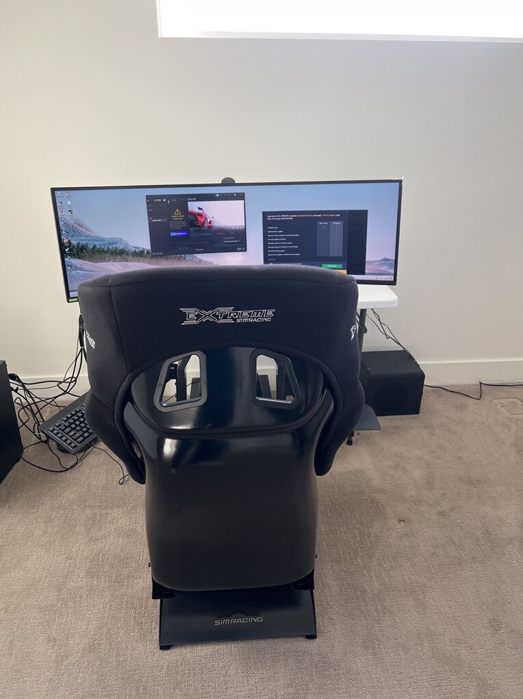 For sale is a complete Sim racing package. It is turn key. Just sit down and enjoy. Comes with adjustable Extreme Sim racing seat, Logitech Force Feed steering wheel, upgraded H- pattern shifter, also comes with paddles. It also has adjustable Logitech foot pedals, Samsung wrap around 49” G-Sync gaming monitor, also includes Klipsch THX sound system with subwoofer. Also includes a backlit, wireless gaming keyboard and mouse. Most importantly the operating system is a Xidax gaming PC. Xidax is the most up and coming company in the gaming industry. Extremely powerful and silent. I spared no expense on the operating system as you can see from the build sheet I included in the pics. Comes with Assetto Corsa loaded.