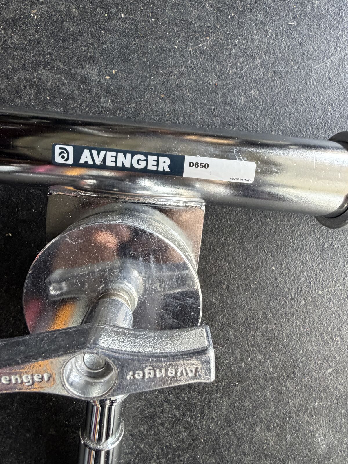 Selling an Avenger D650 Junior Boom Arm with counterweight in excellent working condition with no cosmetic wear. Heavy-duty chrome-plated steel construction.