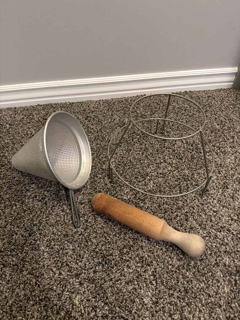 VenmoWear-Ever No. 3341&1/2 - Aluminum Canning Cone/ Colander/Strainer/Sieve set, includes wooden Pestle.