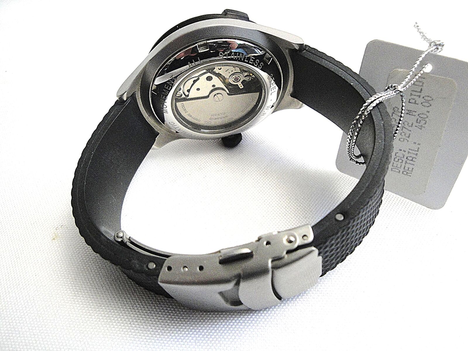 This stylish watch features a black bezel, case, and band clasp made of stainless steel. Its mechanical automatic movement ensures accurate timekeeping, while the analog display provides a classic and easy-to-read design.