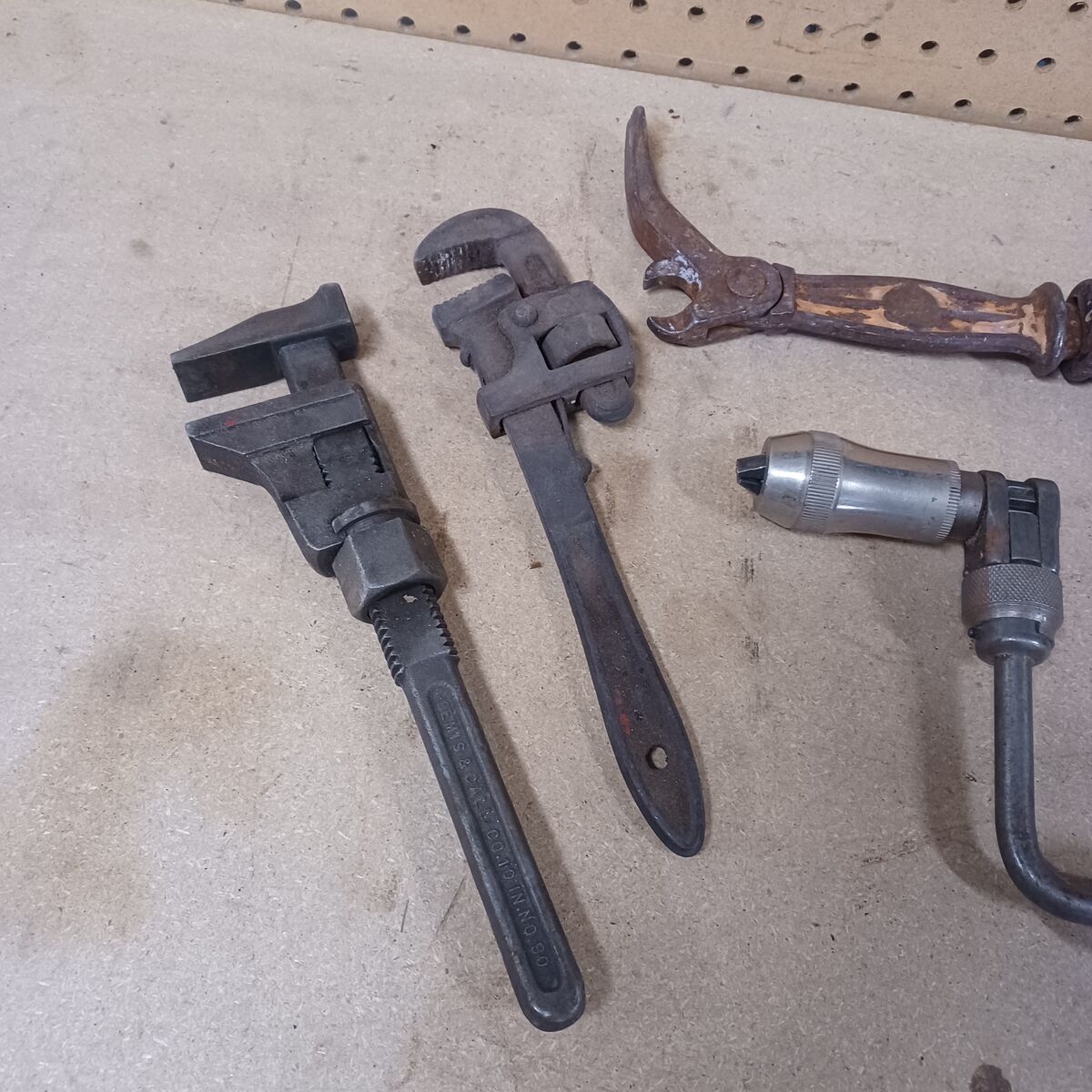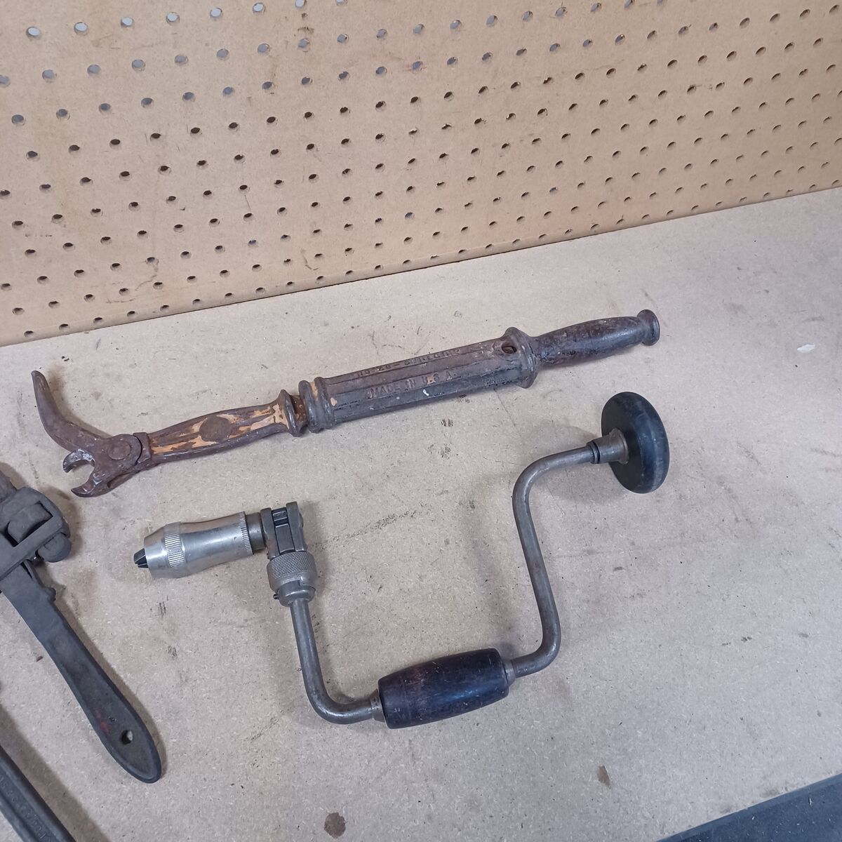 Sliding nail puller, Brace and bit drill, and monkey wrenches. $60 dollars or make offer for individual items.