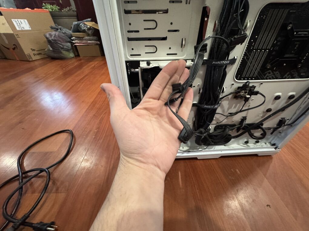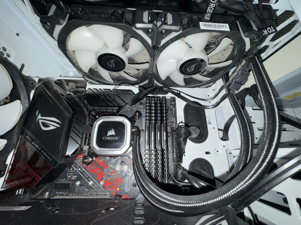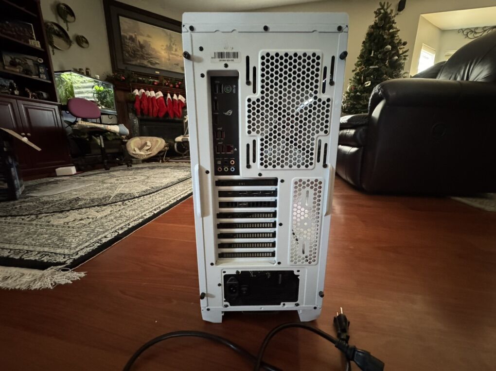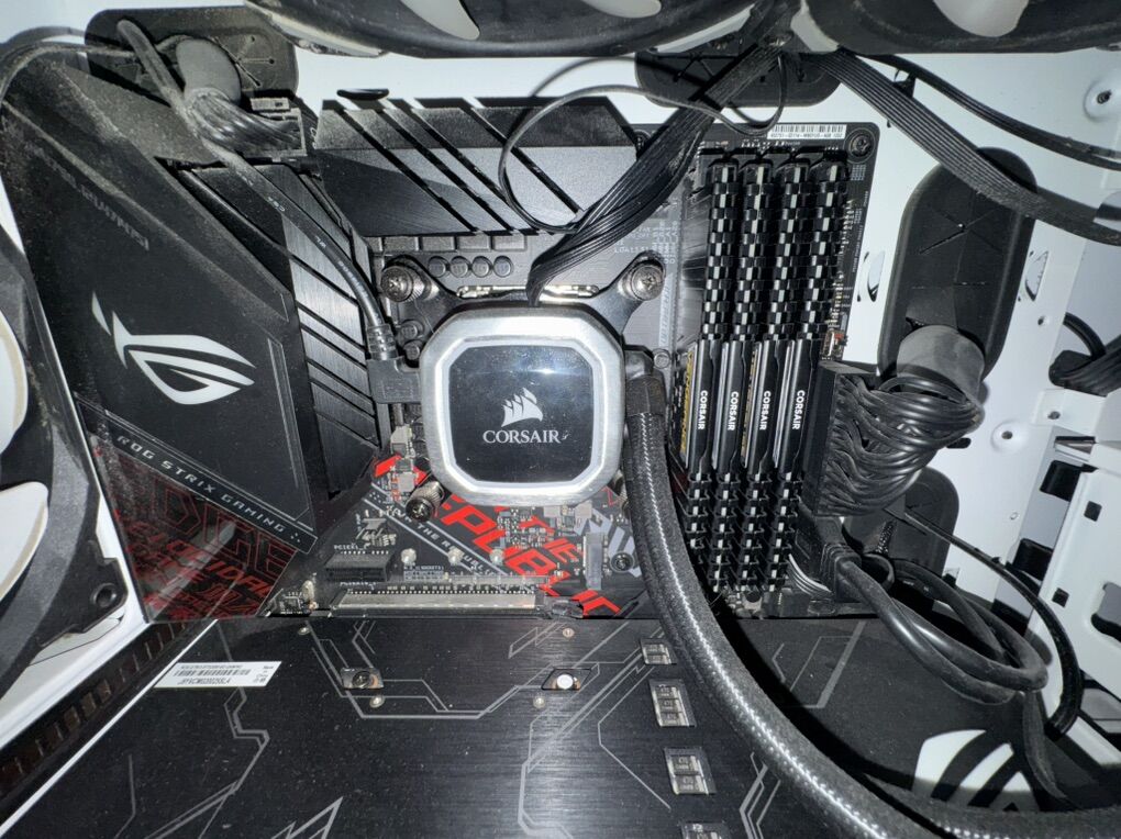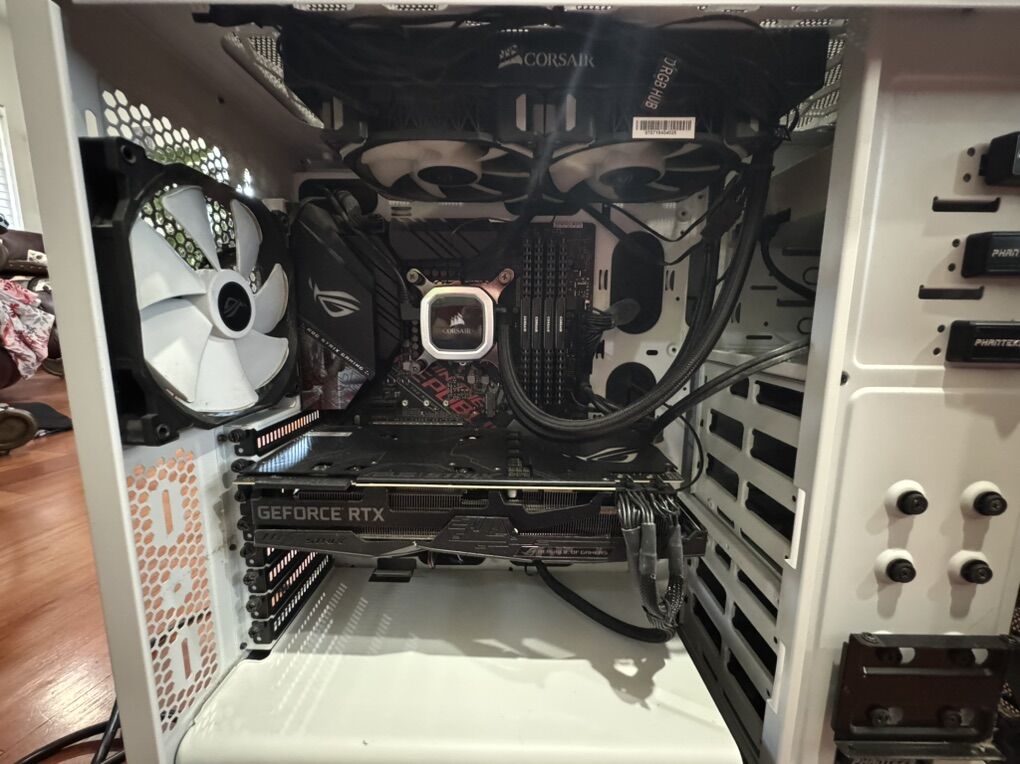 6 year old PC with a Asus ROG Strix RTX 2080, Asus ROG Strix Z390-H motherboard 32GB of Corsair Vengeance Ram DDR4 Corsair RX850x power supply, with power cable I5 9600K intel Processor Corsair H100i RGB AIO Phanteks PC case Has no SSD or hard drive, and no Operating system.