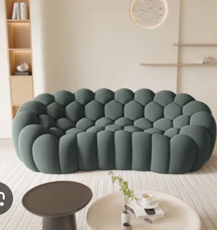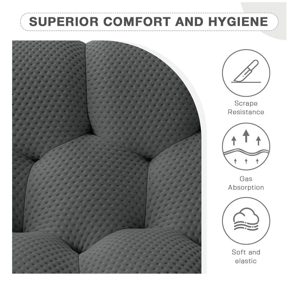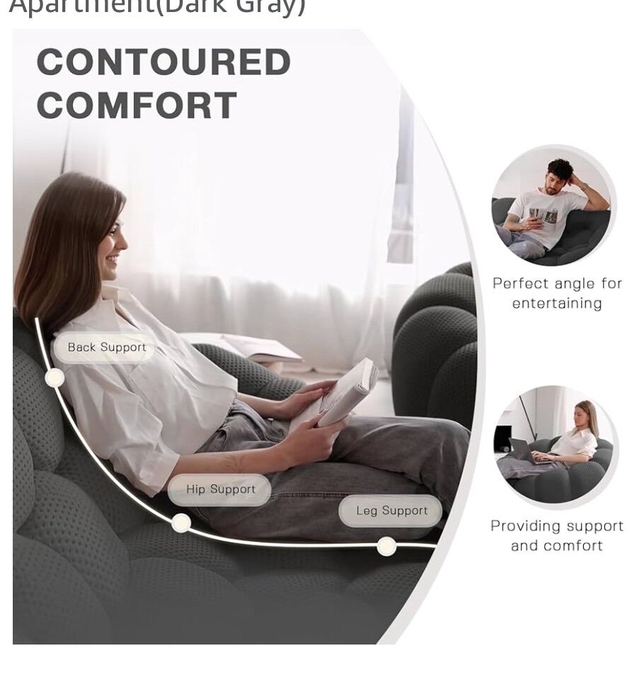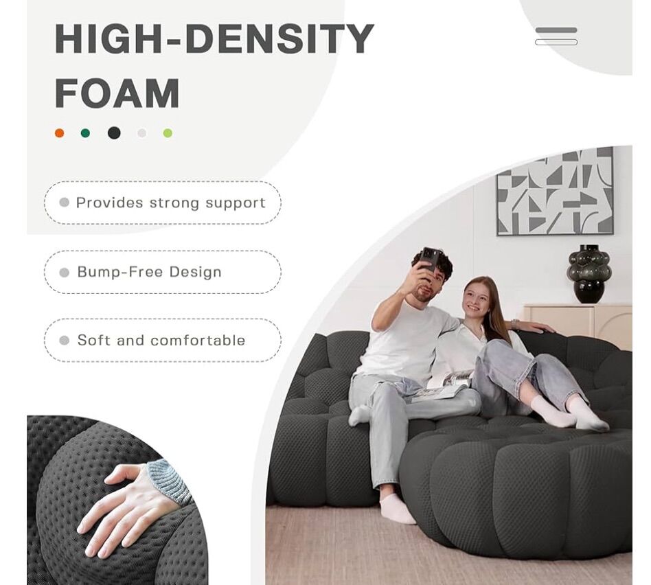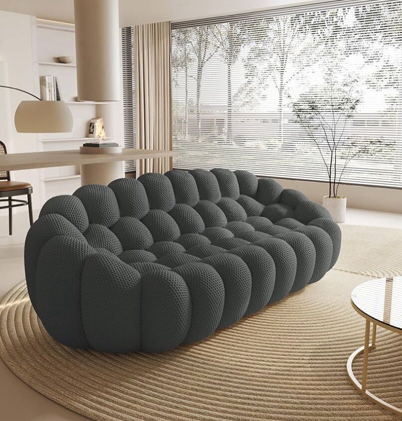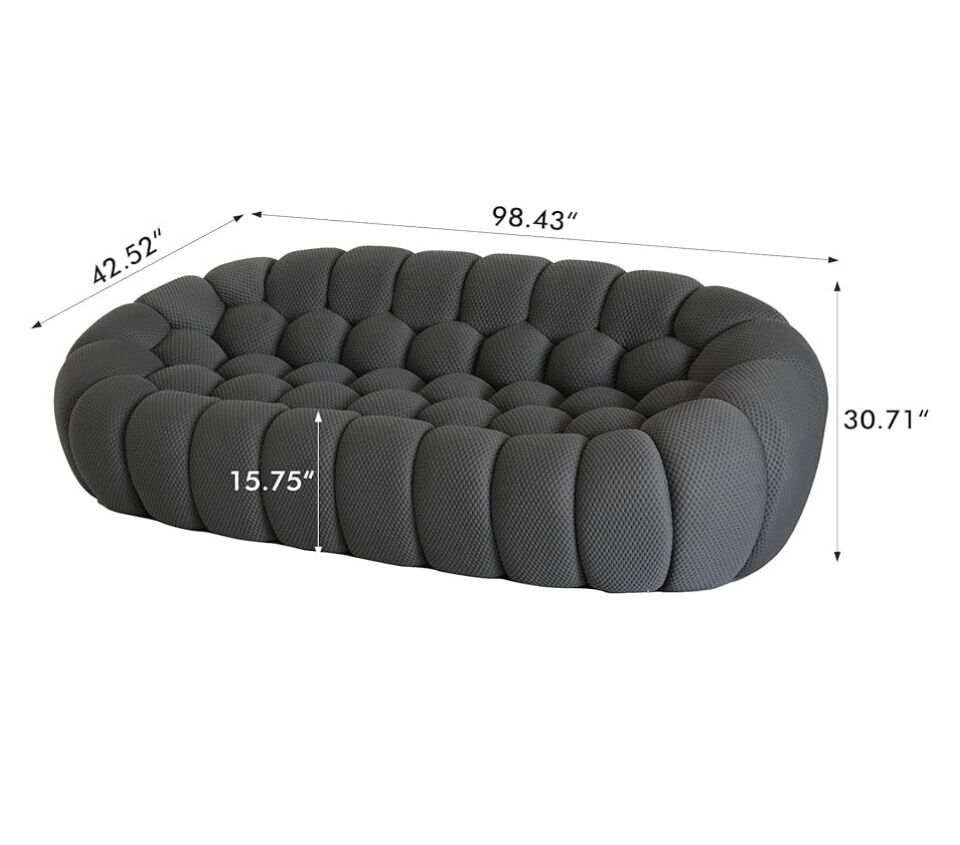 Lightweight and Breathable FabricThis Large Sofa Couch with High-precision 3D knitted fabric. It has three-dimensional toughness and ductility, soft and flexible feel, uniform force and good air permeability.It comes with Modern sofa couch blends breathable fabric and classic oval contours Advantages of Sofa The sofa is designed with Football Shape, which reduces the risk of collision injuries when children are moving around the home, providing a safer home environment. Quilted recesses not only add aesthetics, but also provide a massage-like feel that enhances overall comfort. With a fully wrapping sofa, you can put your entire body back into the sofa for ultimate relaxation No Assembly Necessray This soft sofa does not require a tedious assembly process, please remove all the packages and pat each part to make it rebound better and fluffy; The one-piece design is more stable and reduces movement and friction between parts, increasing the durability and service life of the sofa. It also reduces gaps and seams, making cleaning and maintenance easier and less likely for dust and dirt to accumulate. Excellent SupportThe sofa frame is made of high density case-hardened sponge, which provides the necessary support for the couch, you don't need to worry about sofa deformation or collapse. Also coupled with the ergonomic design of the sofa's wave curvature shape, helps to reduce the pressure on the cervical and lumbar vertebrae, provides better support, enhances seating comfort, and helps to maintain a healthy spine.