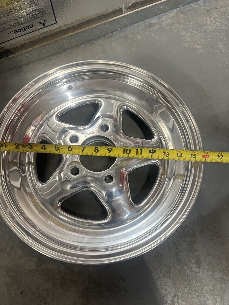 2 15” weld pro star drag racing wheels 3 1/2” wide wheels never been mounted 5 on 4 1/2 bolt pattern one of them has a few scuffs from being moved around just want out of my garage $300.00