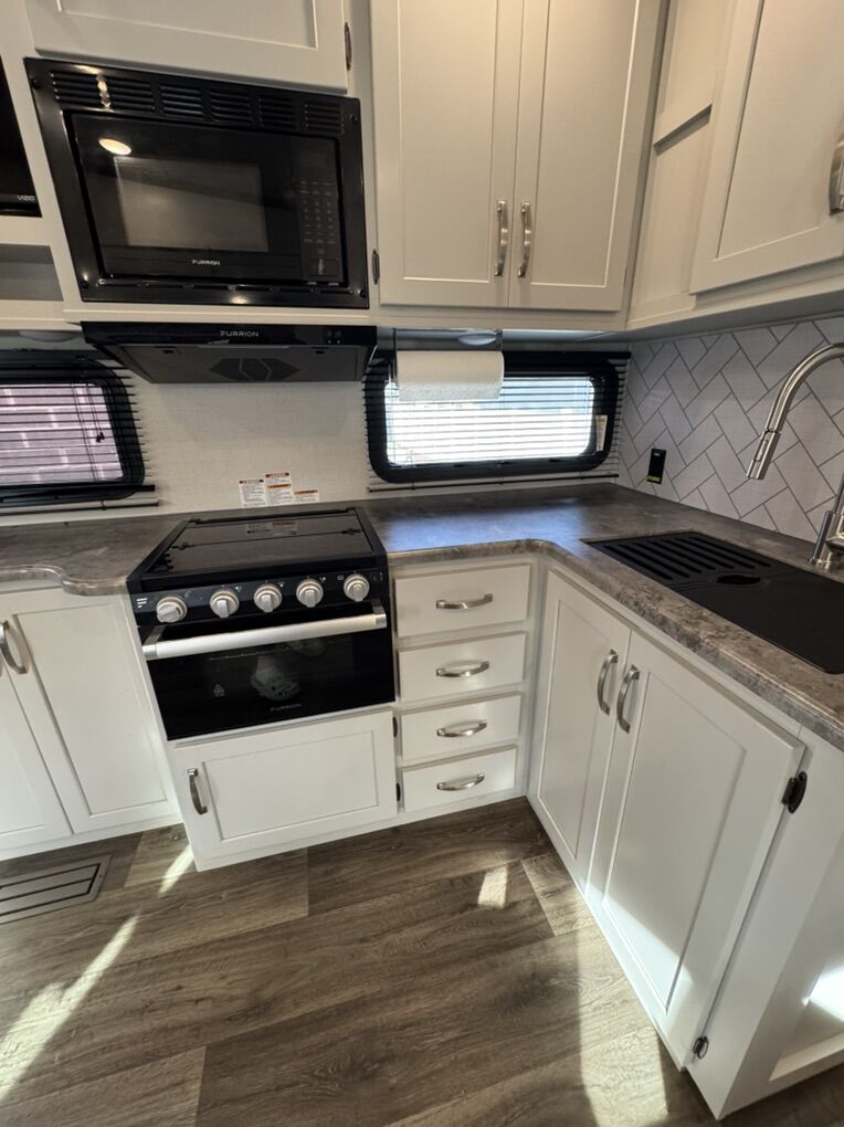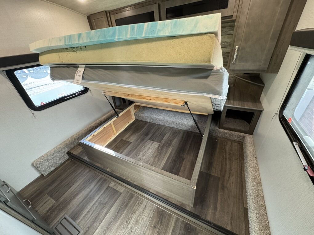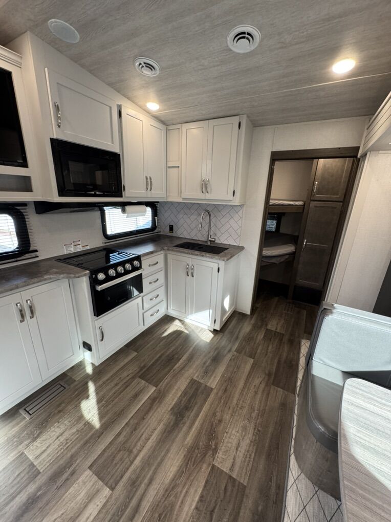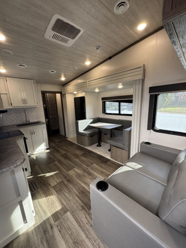 Features: •Private front queen bedroom •Double-over-double rear bunk beds •Spacious slide-out living & dining area •Full kitchen with refrigerator, microwave, oven, and storage • I upgraded the batteries to 2 lithium 12’s •Large bathroom with walk-in shower •Power awning with LED lighting •Power stabilizer jacks •Plenty of interior and exterior storage •Modern, family-friendly layout