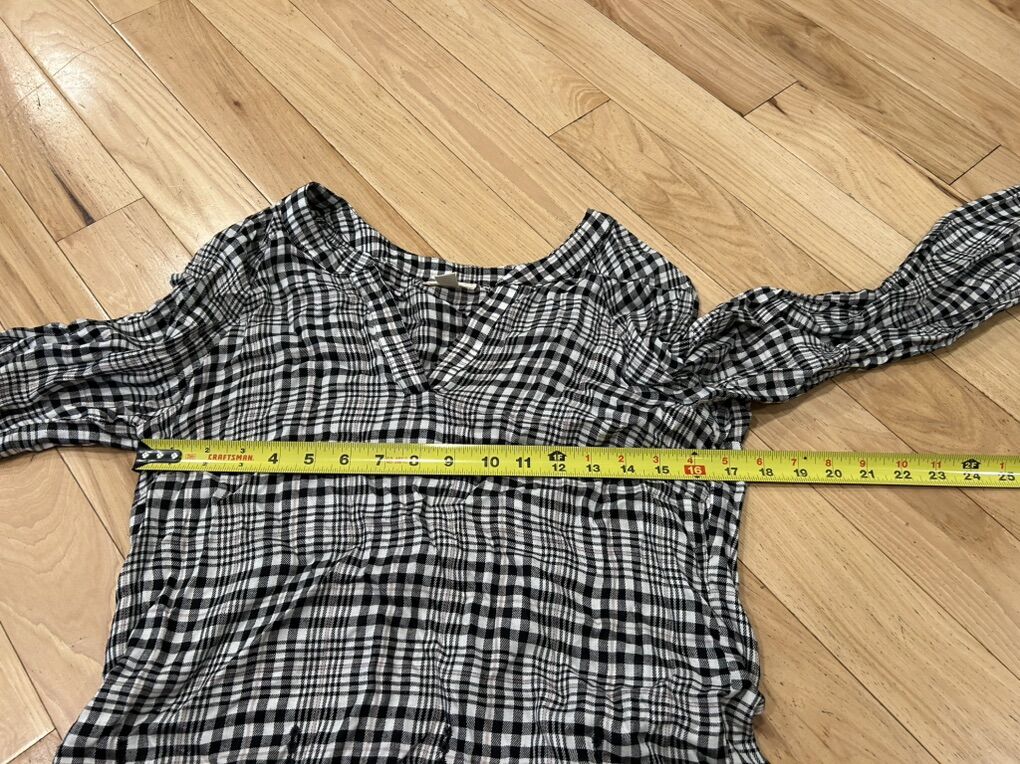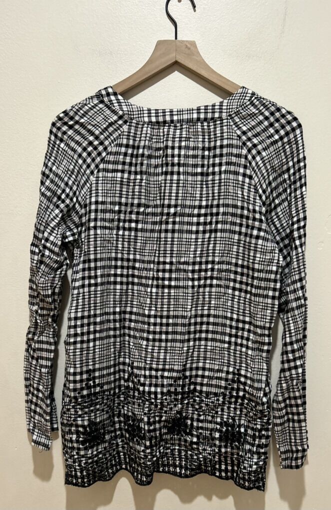 Tribal Jeans Embroidered Hem Black & White Plaid Long Sleeved Blouse Shirt Top - Women’s Size Small - great condition - pre-owned.