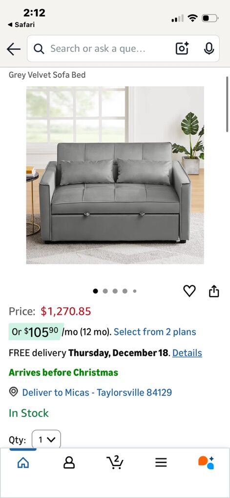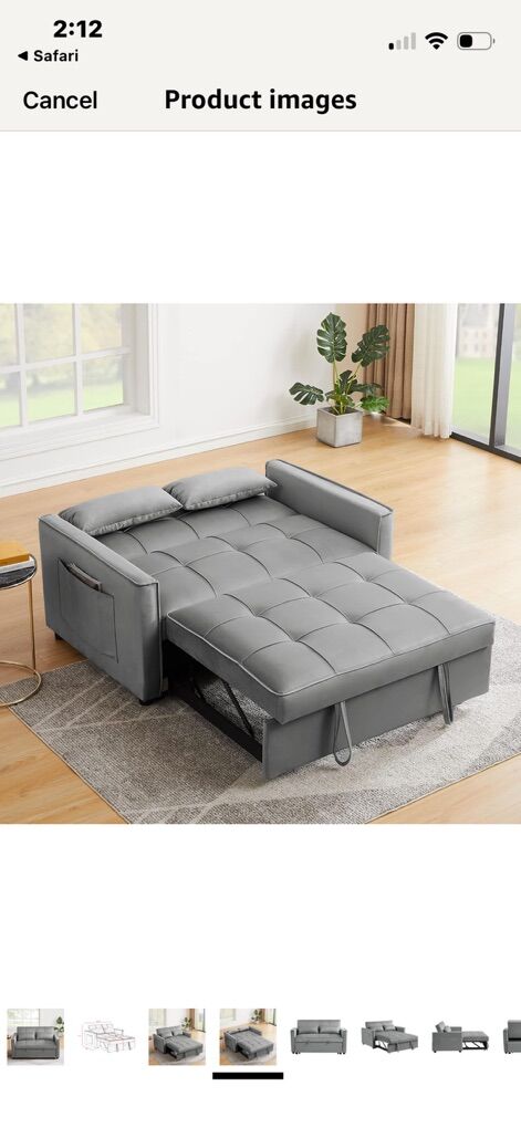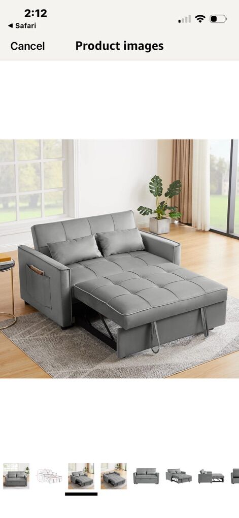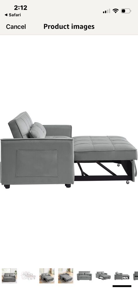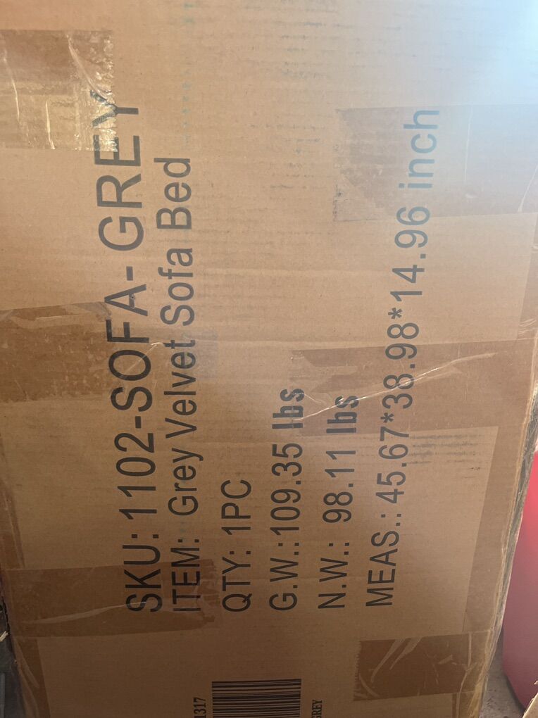 ZelleNEW In Box Grey Velvet Sofa Bed pull Out Gray