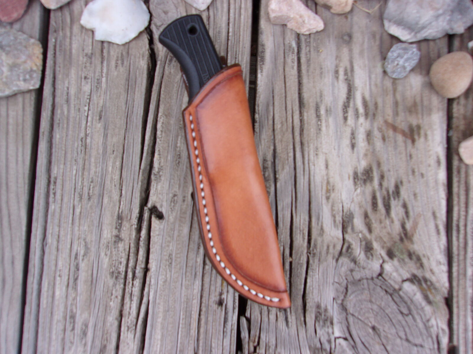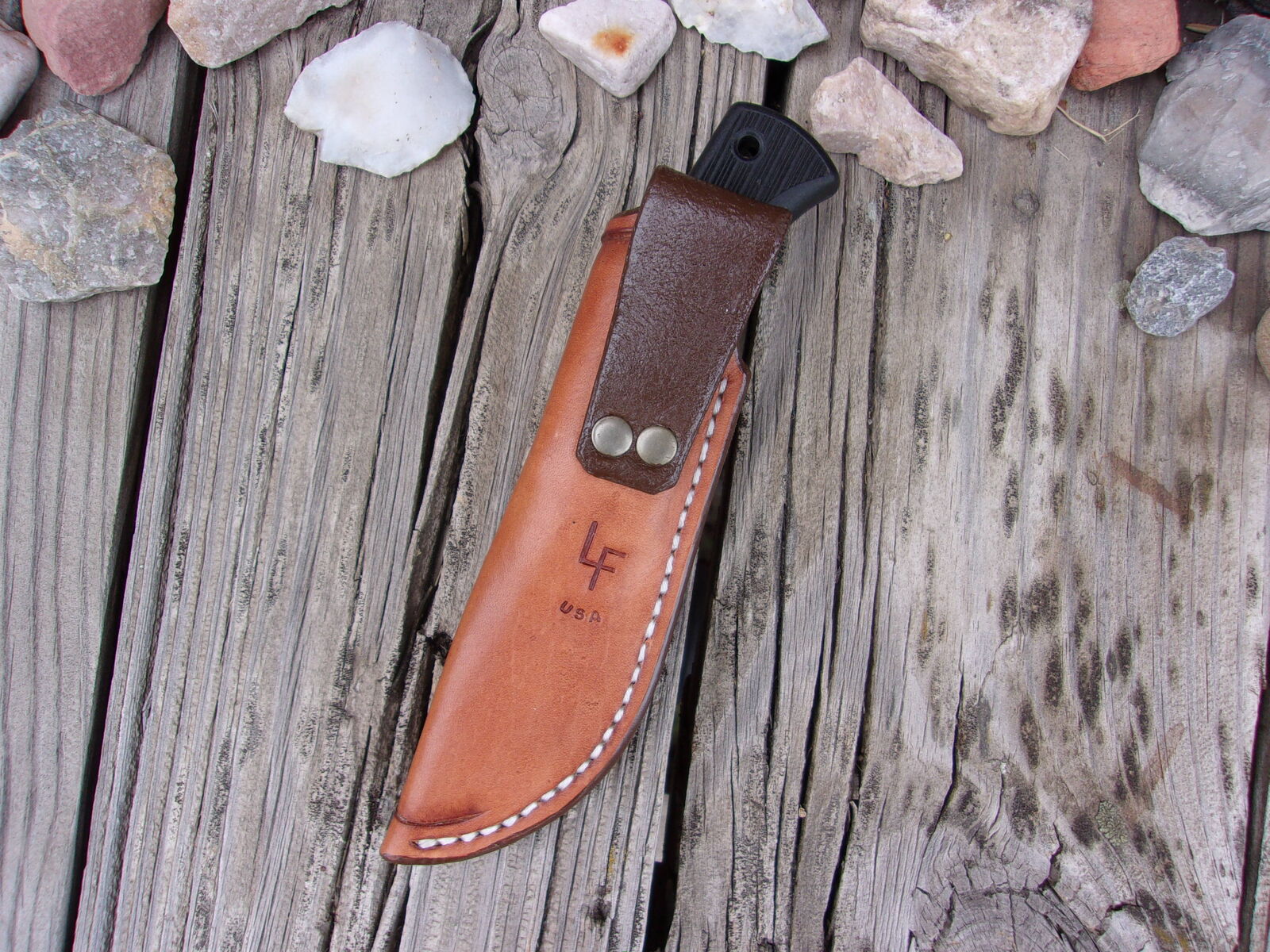 The knife is new and comes with a new LF Custom Leather Pouch Sheath. These knives are pretty nice. I have one that I keep in my bag, the knife feels good in the hand and is “very sharp”.