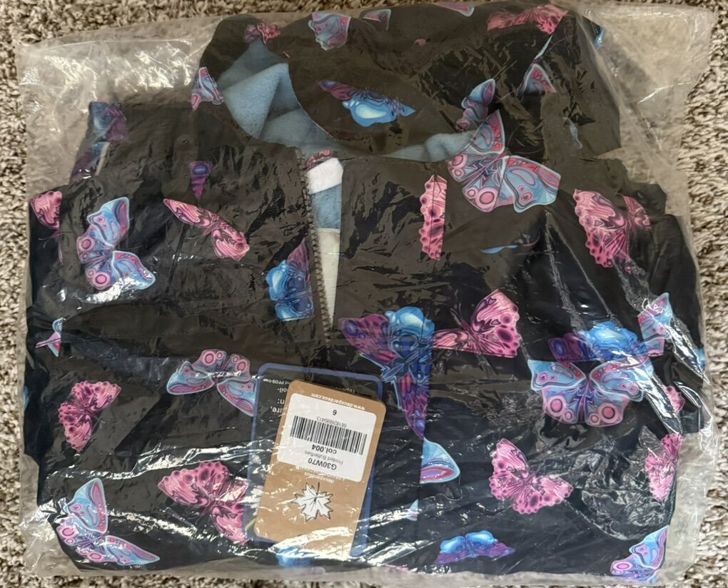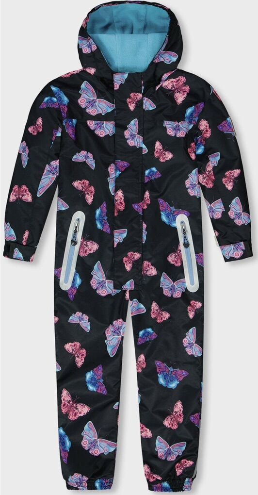 ZelleLittle girls printed mid-season one-piece outerwear multicolored buttlerfilies on black background