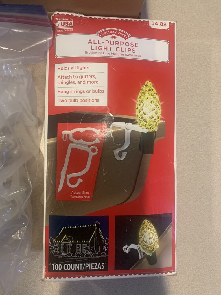 Warm white Outdoor Christmas Lights 8 strands nicely packed in their original boxes. Comes with a ton of clips